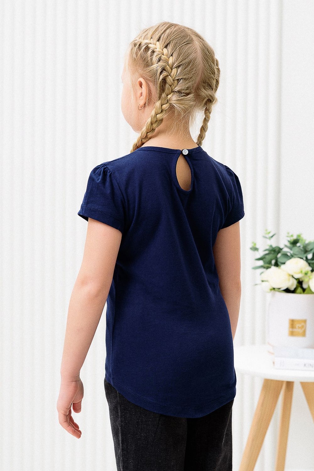 M футболка для девочки - темно-синий №Н-124