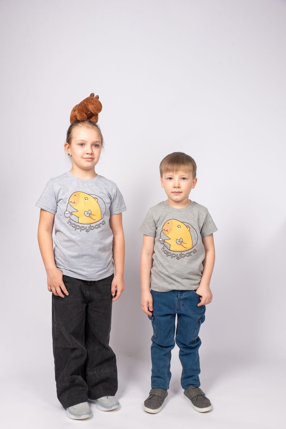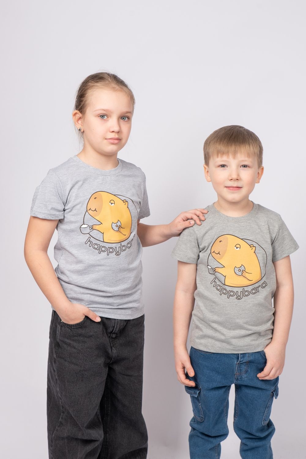 Футболка детская подойдет на девочку и мальчика. С коротким рукавом и округлым вырезом горловины. Яркий принт – Шелкография, придает неповторимый и модный вид. Сшиты из качественного 100% хлопка. Дышащая ткань обеспечит детям полный комфорт. Вашим детям будет удобно заниматься спортом, активно двигаться, бегать и прыгать. Отлично подойдет для детского сада и школы, занятий физкультурой и тренировок.