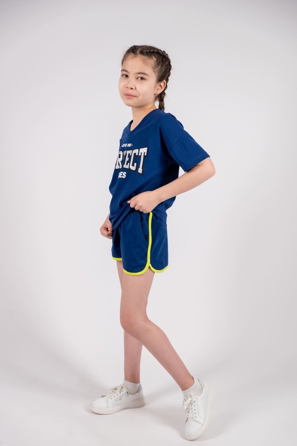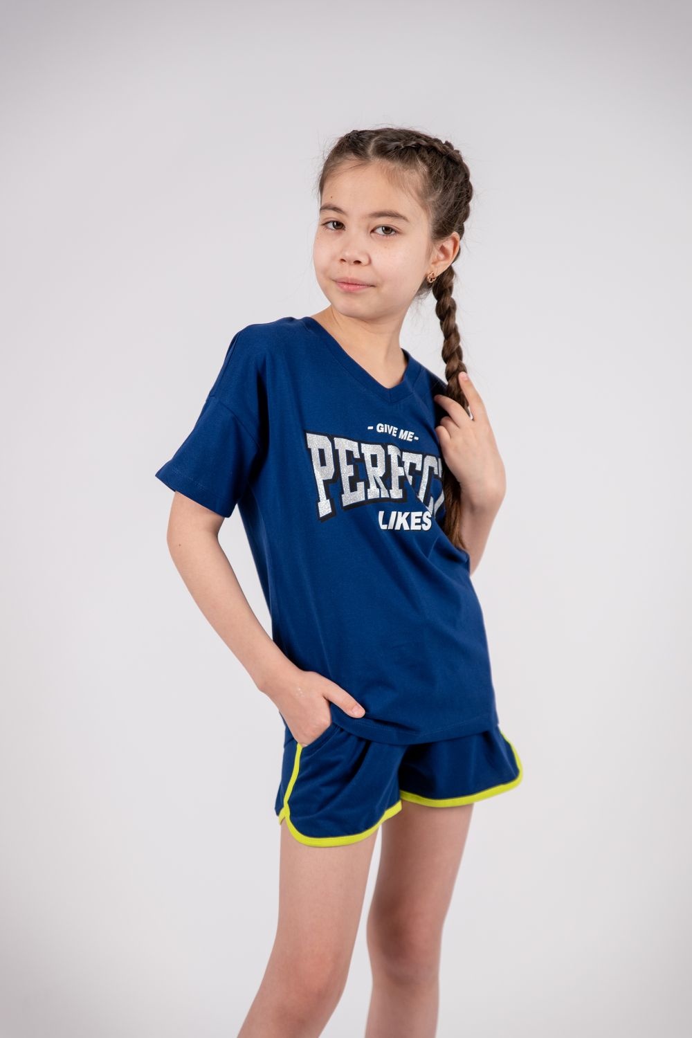 Футболка для девочки выполнена из 100% хлопка. Футболка прямого силуэта, со спущенным плечом, коротким рукавом. Горловина имеет V-вырез.На спинке принт Шелкография с глиттером. Надпись переводится как 'Поставь мне идеальные лайки'. Материал не растягивается и не деформируется.
