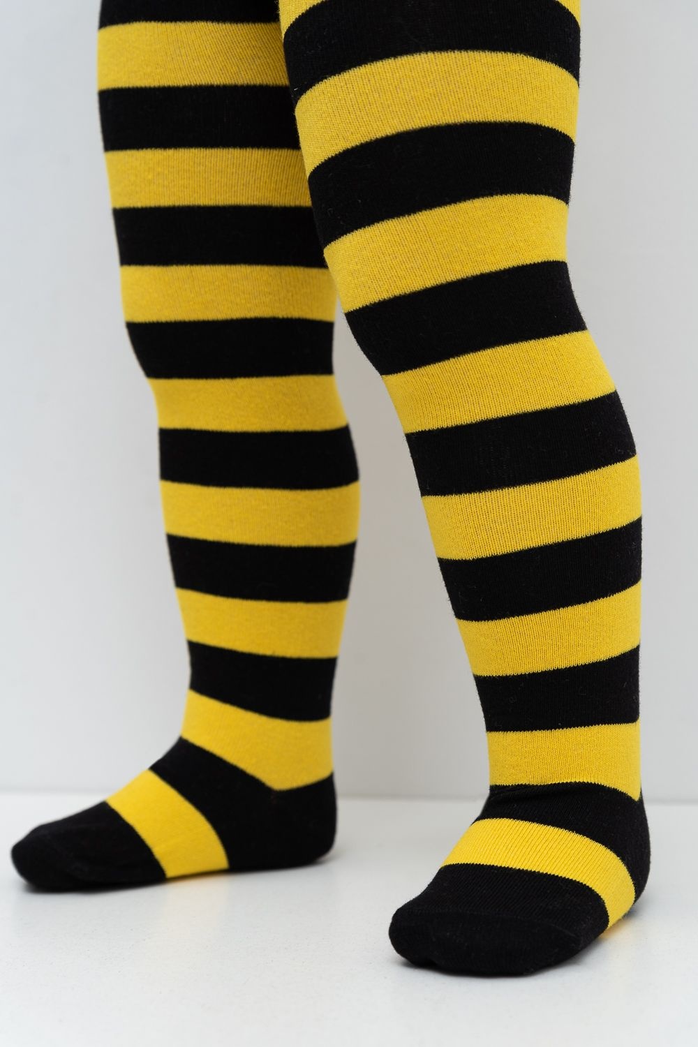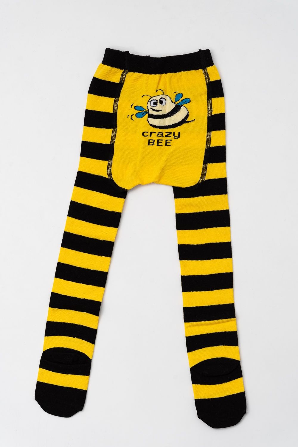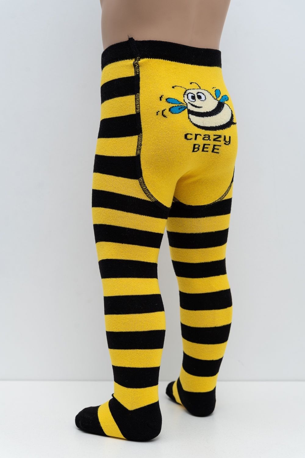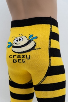 Яркие детские колготки с пчелкой. Расцветка в черно-желтую полоску. Сзади колгот изображение пчелки.