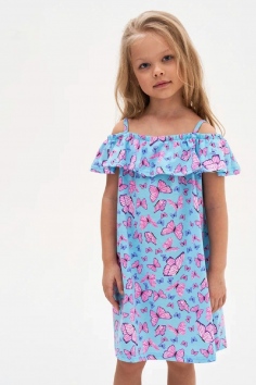 Детский стильный сарафан для девочек в яркой весенне-летней расцветке с насыщенными рисунками в голубых тонах. Современная модель, модный крой.