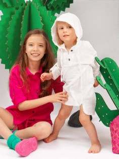 Модная, детская туника Соль&Перец свободного кроя, с капюшоном и асимметричной линией низа. На горловине и на рукавах застежки-пуговицы (кокос). Ткань-двухслойный муслин, хорошо пропускает воздух, защищает от солнца, идеально подходит для чувствительной кожи. Отличный выбор для прогулок, на пляж, в детский сад, для дома и на каждый день.