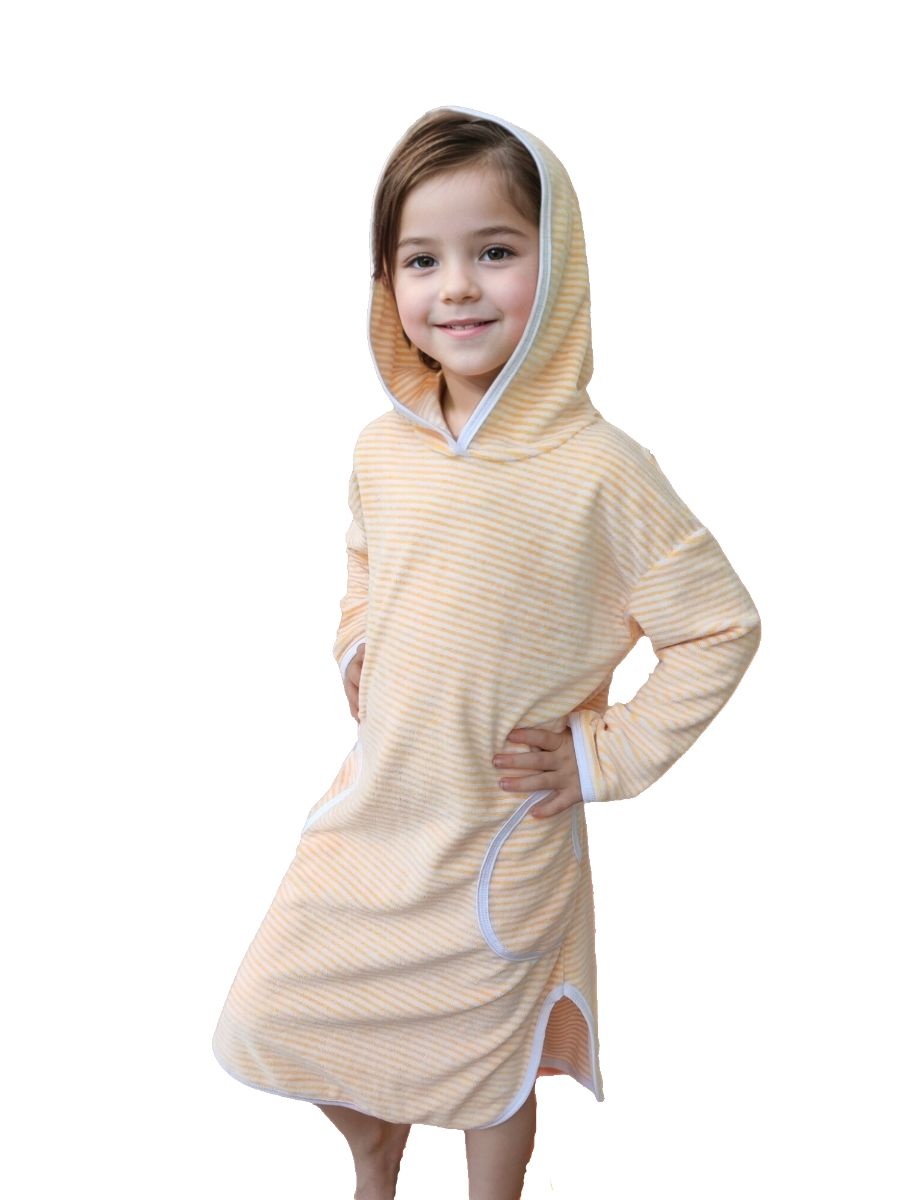 Туника из велюра — незаменимая вещь в домашнем гардеробе каждой девочки. Эта универсальная штучка будет уместна как дома, так и на отдыхе, в поездках, на пляже и в повседневной жизни. Свободный крой и удобные карманы по бокам обеспечат вашему ребенку комфорт и уют. Силуэт оверсайз с длинным рукавом и капюшоном делает её особенно удобной. Удлиненное домашнее платье не сковывает движений, его можно брать с собой в путешествие. Теплая туника сшита из хлопкового трикотажа премиум-класса, который сочетает в себе мягкость, дышащие свойства и приятные тактильные ощущения. Состав ткани: 80% хлопок и 20% ПЭ. Благодаря этому идеальному соотношению, трикотажное платье для девочки практически не мнется, хорошо тянется и в то же время держит форму, а также устойчиво к образованию катышек. Легкий уход за одеждой также станет приятной особенностью для родителей: велюр хорошо переносит стирку и быстро сохнет, что значительно упрощает процесс. Кроме того, такая туника станет прекрасным подарком на день рождения или праздник для подруги, дочки или племянницы. Позаботьтесь о комфорте своей девочки, выбрав эту модель, в которой она будет чувствовать себя раскованной и уверенной. Не упустите возможность порадовать свою маленькую модницу стильным и практичным элементом гардероба!