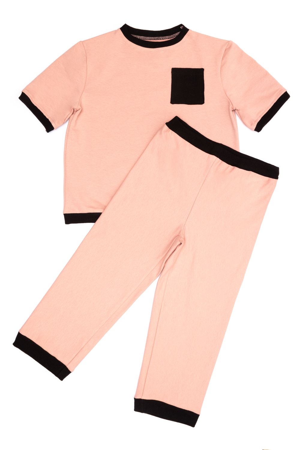 Уютный костюм для самых маленьких и немного постарше детишек. Футболка и брюки из приятного на ощупь футера двунитки. Удобные не стесняющие штанишки на широком поясе с манжетами по низу. Незаменим для повседневных прогулок, в детский садик или в качестве домашнего костюма. Легко стирается, не закатывается.