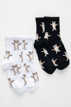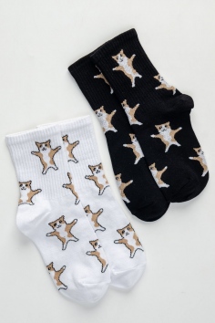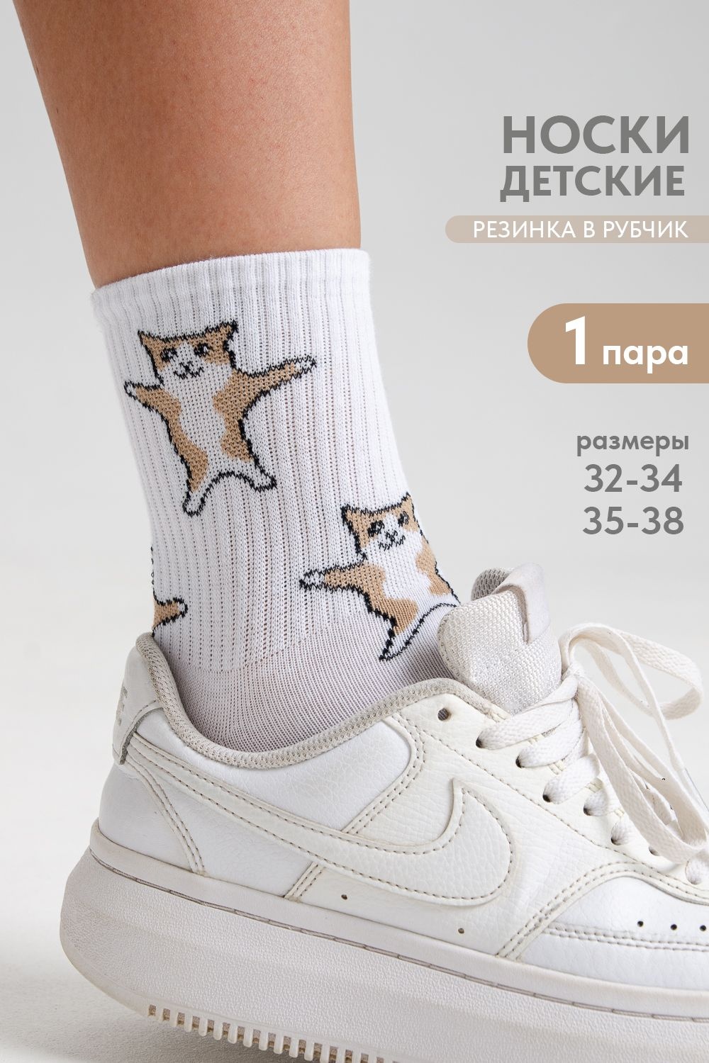 Отличные носки для детей, комплект 1 пара. По всему носочку узоры из танцующий котиков.