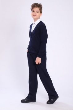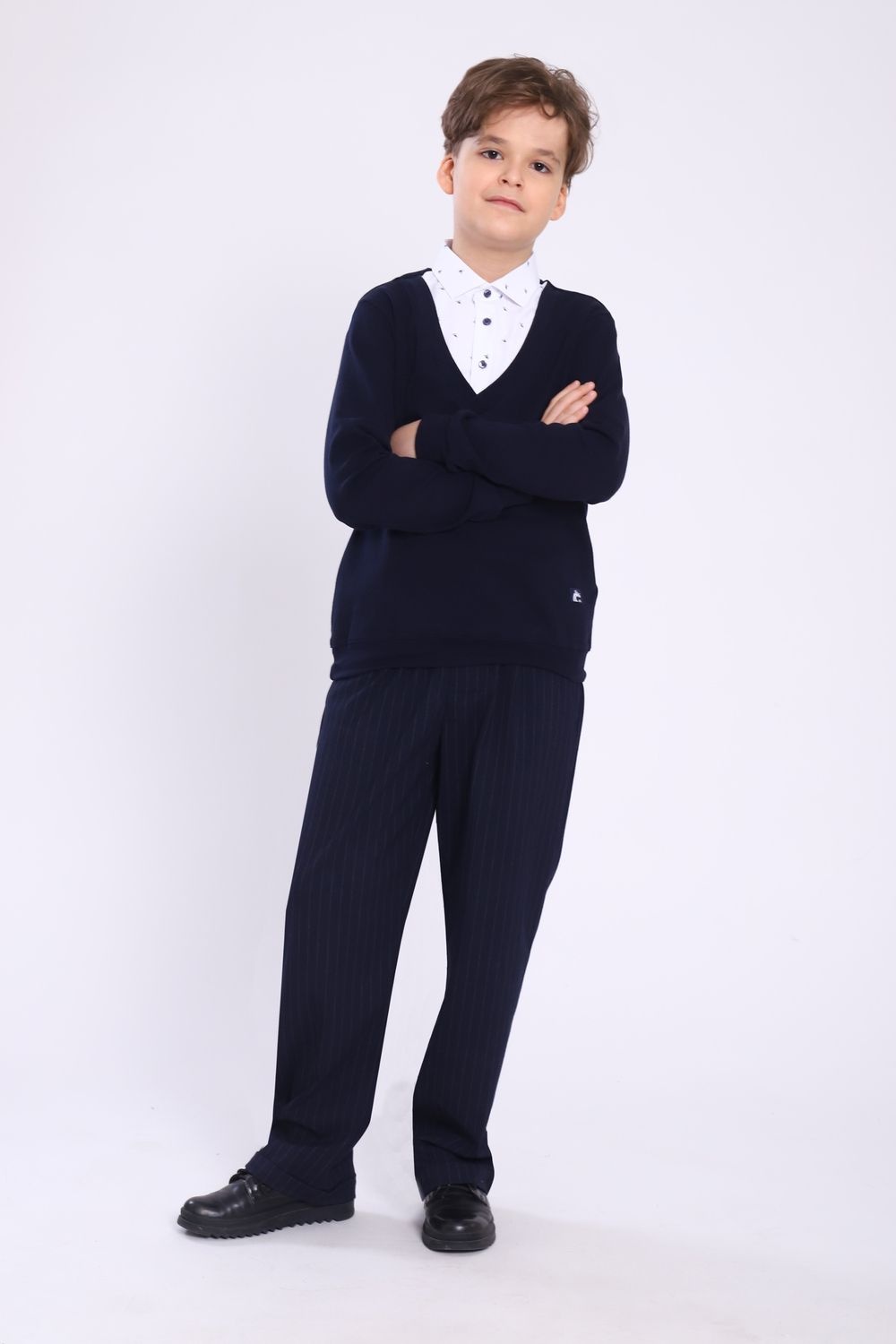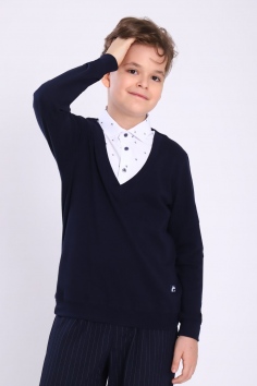 Джемпер-обманка для мальчика Чарли арт. 13273 - темно-синий-кораблики на белом