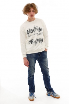 Заказывая эту уютную вещицу для ребенка, вы выбираете качественную одежду с принтом в виде надписи. Тонкий трикотаж делает свитшот универсальным для носки в любое время года. Набравший популярность среди подростков фасон отлично впишется в гардероб вашего подрастающего модника.