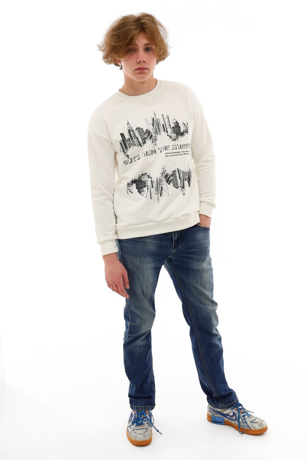 Свитшот детский с рисунком - стильная и практичная одежда для мальчика. Эта кофточка из футера идеально подойдет для школьных будней или спортивных занятий. Она оверсайз, поэтому отлично подойдет как подросткам, так и младшим юношам. Свитшот выполнен из футера петля в спортивном стиле с актуальным принтом. Преобладание хлопка делает его мягким и комфортным на ощупь. Этот модный джемпер с манжетами и поясом из мягкого кашкорсе, что придает ему особый шик. Однотонная школьная кофта выглядит стильно благодаря интересному рисунку в виде разноцветных букв на полочке.