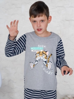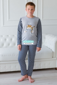 Костюм детский из джемпера и брюк без манжет из кулирки Радость синий №А-06496