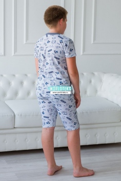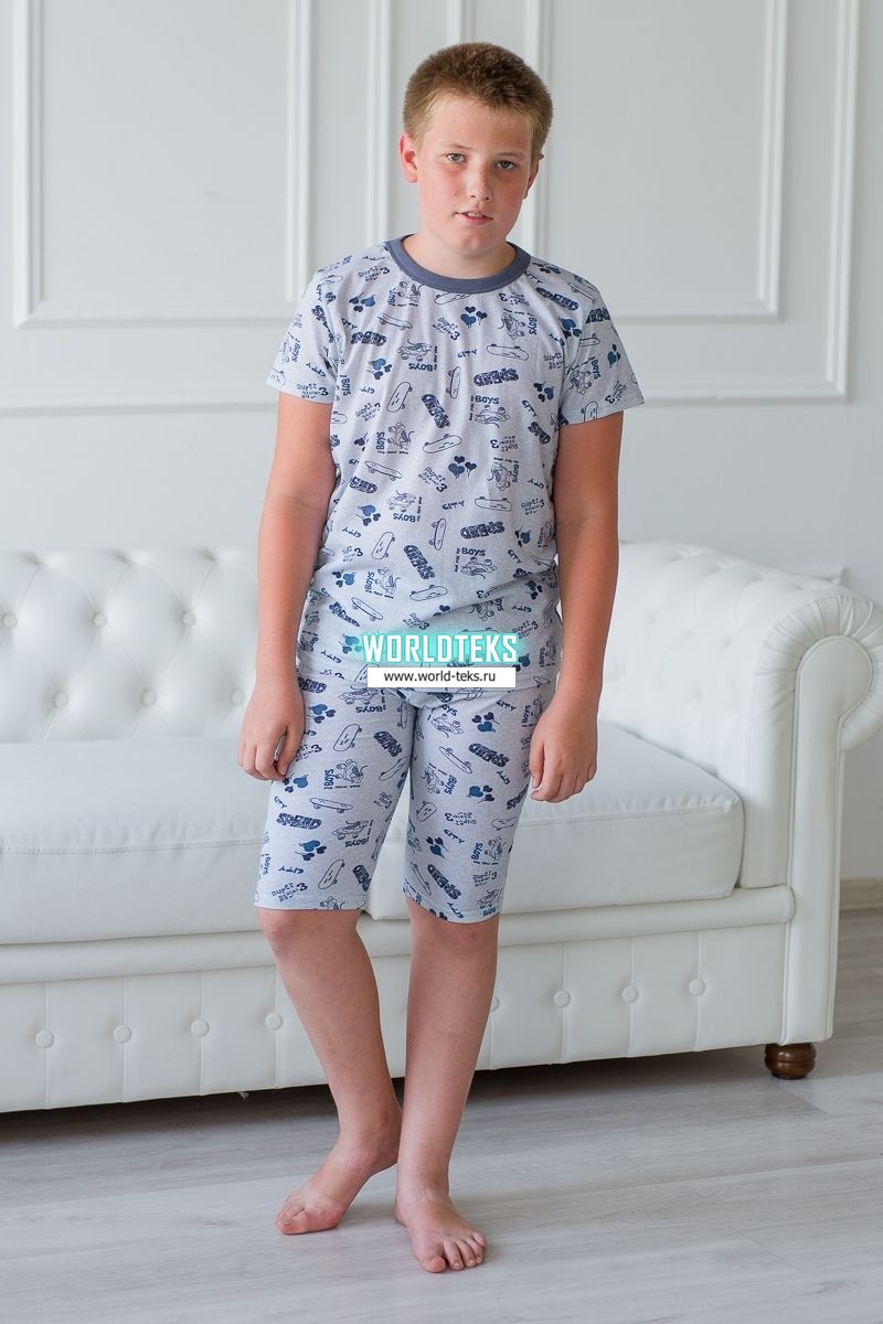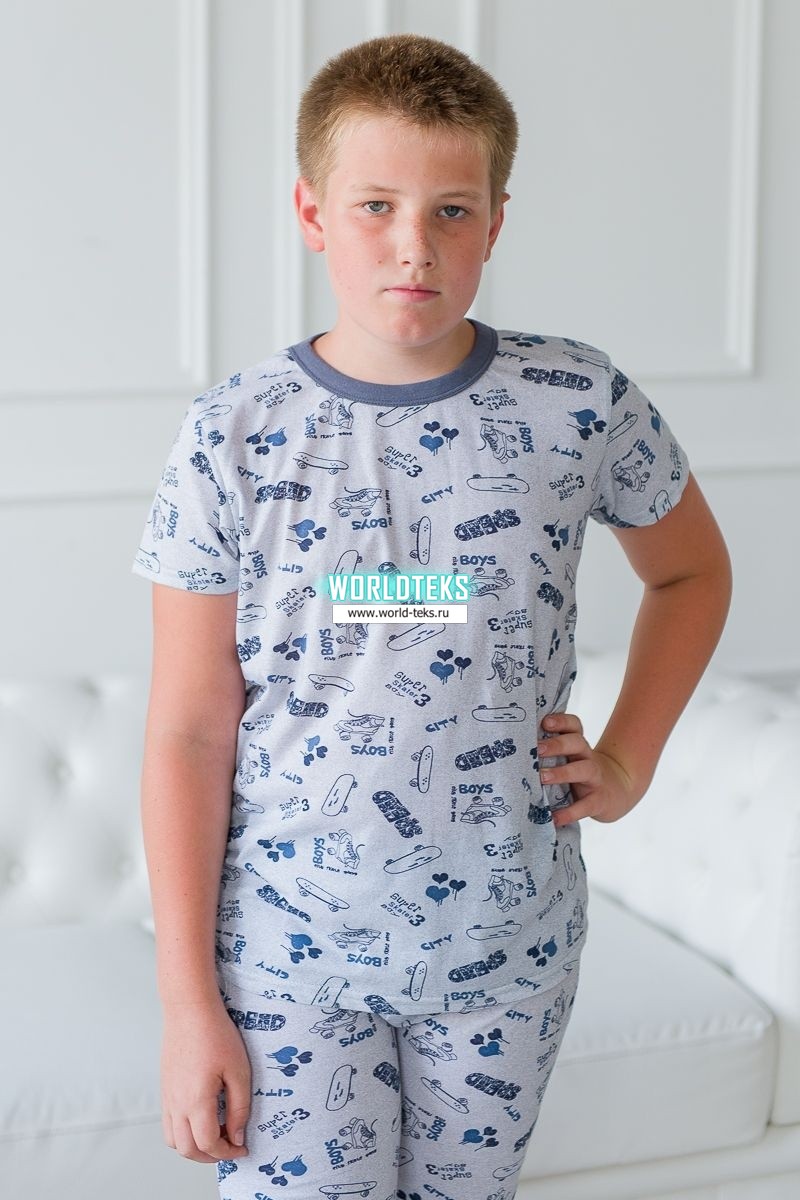 Пижама детская из футболки и бридж из кулирки Саша серый №А-06596
