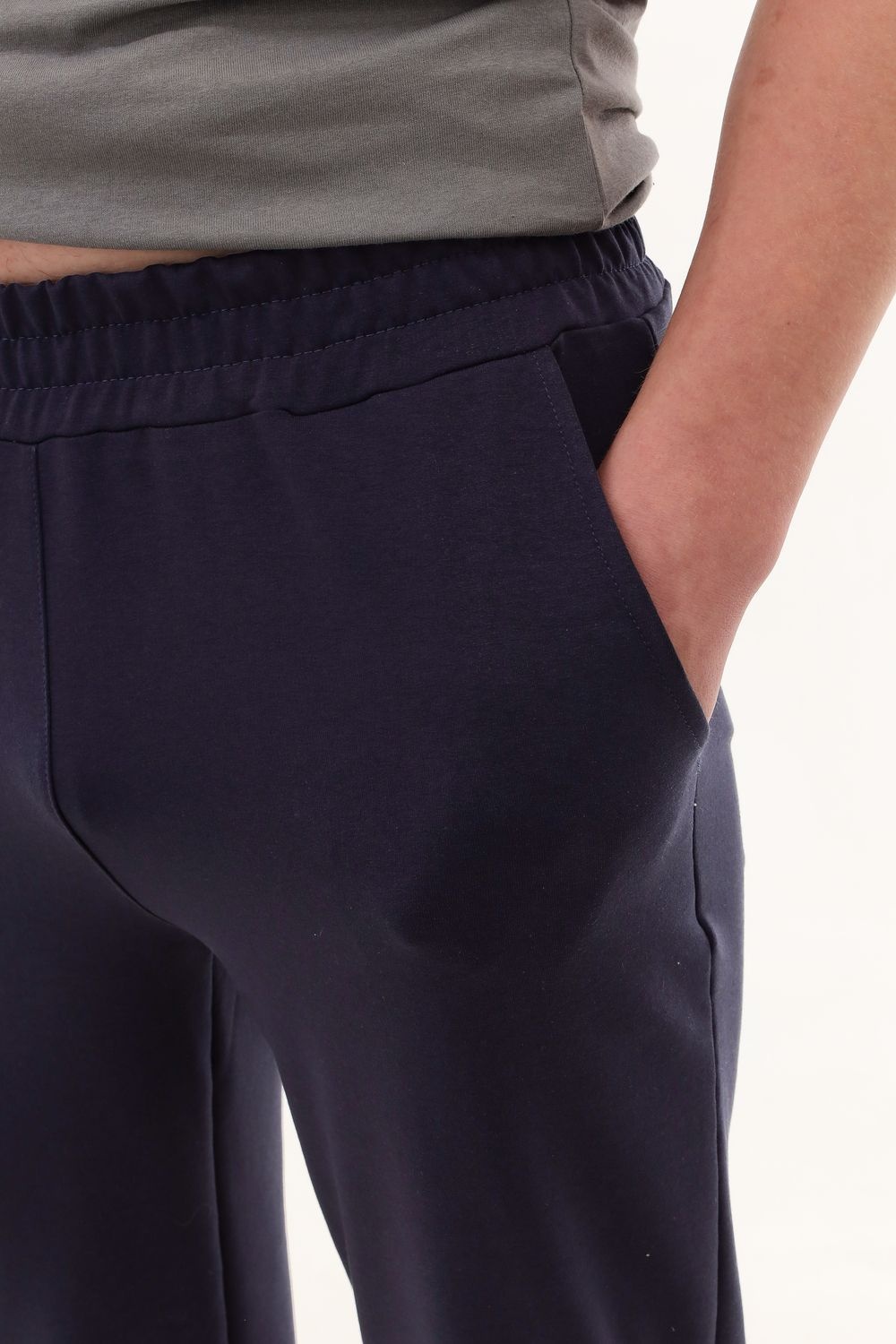Идеальное решение для активного подростка - эти спортивные брюки! Они представляют собой удобный и стильный вариант для повседневных занятий. Штаны сшиты из трикотажа, что обеспечивает комфорт при движении. Модель выполнена в глубоком темно-синем цвете, который прекрасно сочетается с любой верхней одеждой. Без шнурка в поясе и на резинке, эти брюки легко надеть и комфортно носить весь день. Манжеты внизу также на резинке, обеспечивают отличную посадку. Карманы с отрезным бочком добавляют функциональности модели. Эти спортивные брюки идеально подойдут в качестве физкультурной формы.