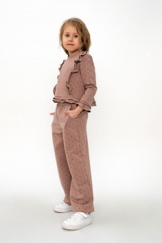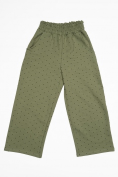 Брюки выполнены из набивного футера. Прямая посадка и резинка на талии позволят ребенку чувствовать себя комфортно во время любых телодвижений. Модный узор в горошек позволит ему выглядеть стильно, а также станет лаконичным дополнением к футболке или лонгсливу.