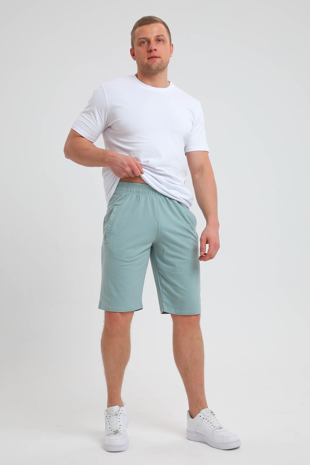 Мужские трикотажные шорты выполнены из хлопка, чтобы обеспечить комфортное ощущение при каждом движении, прекрасно сидят благодаря своему большому размеру и регулируемой посадке, по бокам два кармана с отрезным бочком. Легкая и приятная к телу ткань. Подойдут для повседневной носки, спорта и прогулок.