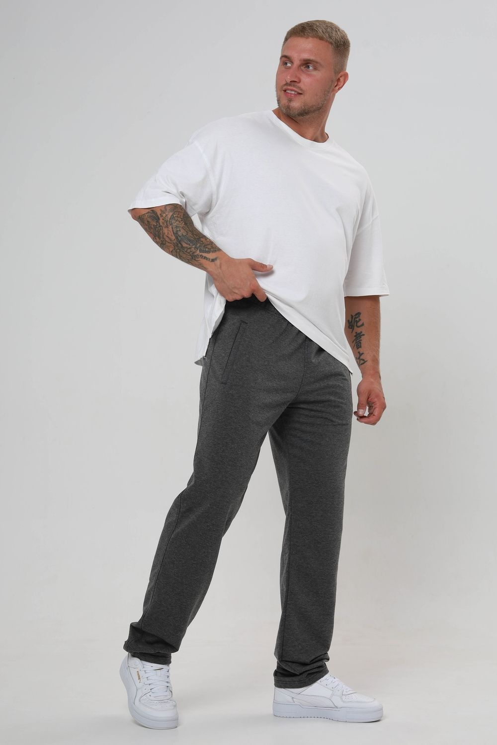 Трикотажные спортивные брюки для мужчин, базовая вещь гардероба. Штаны прямого кроя с двумя карманами на молнии и с эмблемой сбоку, пояс на резинке с внутренним шнурком. Брюки очень удобные и легкие, качественная турецкая ткань. Подойдут как для повседневного ношения, также для прогулок, занятий спортом.