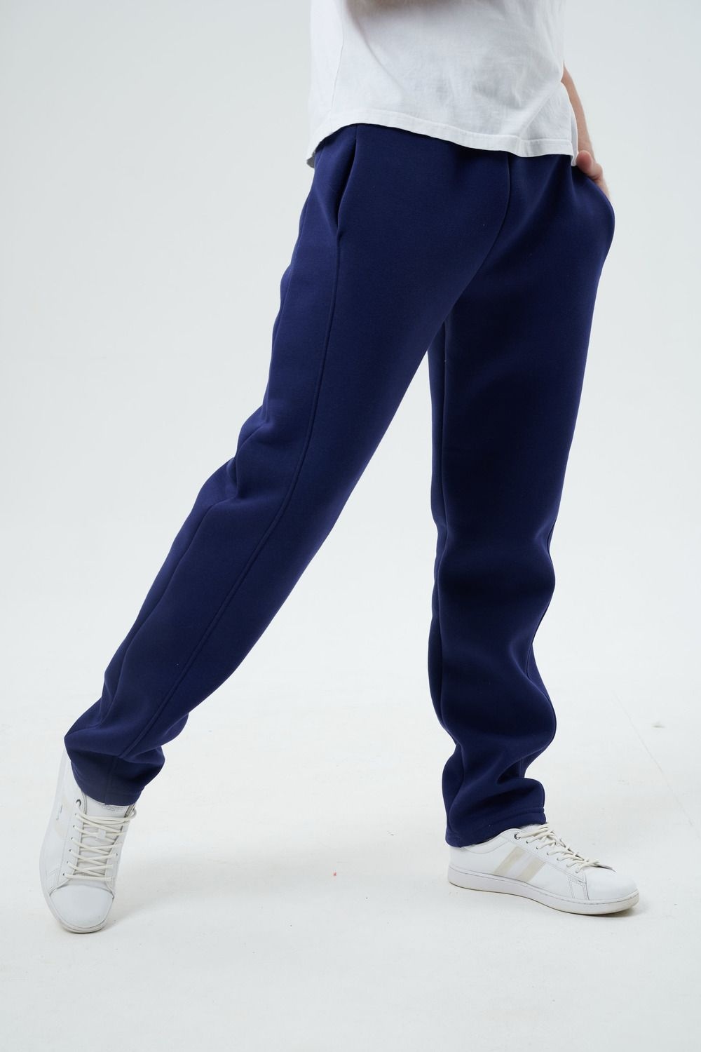 Брюки утепленные, на поясе, свободные, с боковыми карманами. Вдоль боковых швов расположены лампасы.