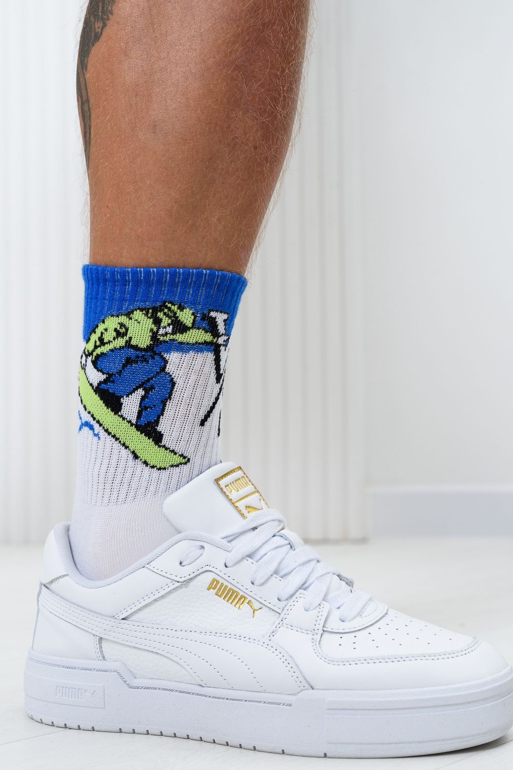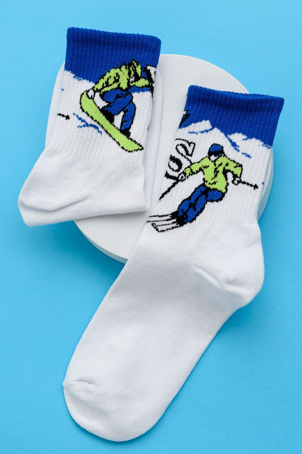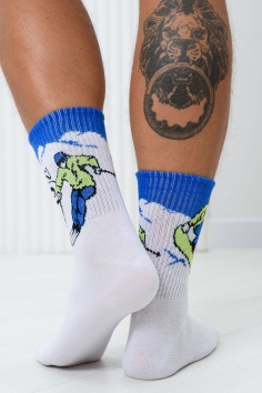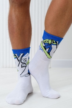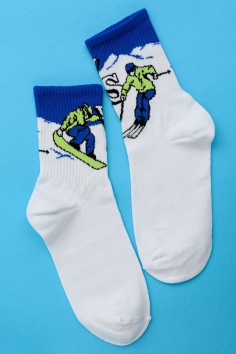 Комплект мужских носков 1 пара. На верхней части носка изображение сноубордиста.