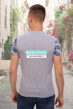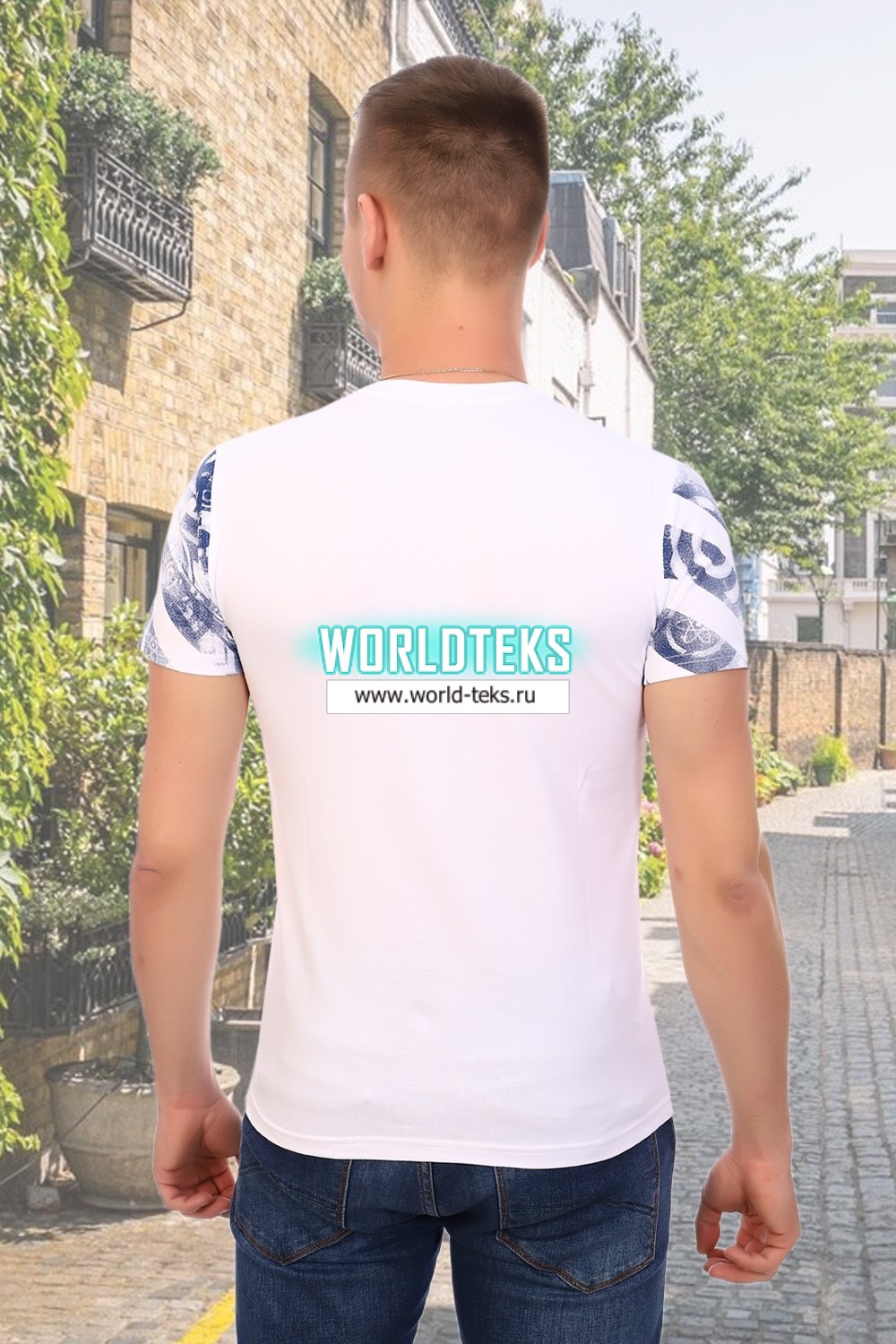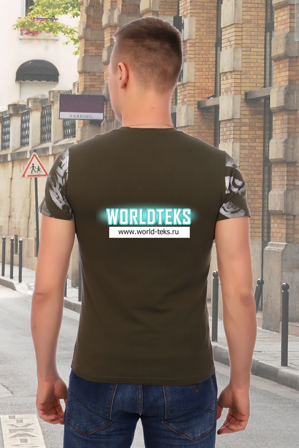 Мужская футболка из кулирки. Короткие рукава, круглая горловина, украшена печатью на груди и рукавах, прямой силуэт.