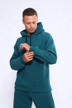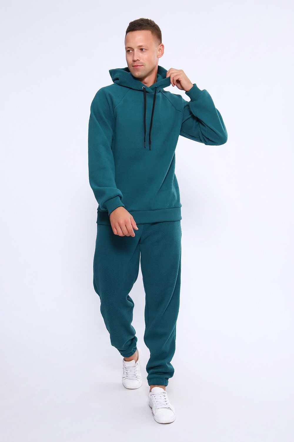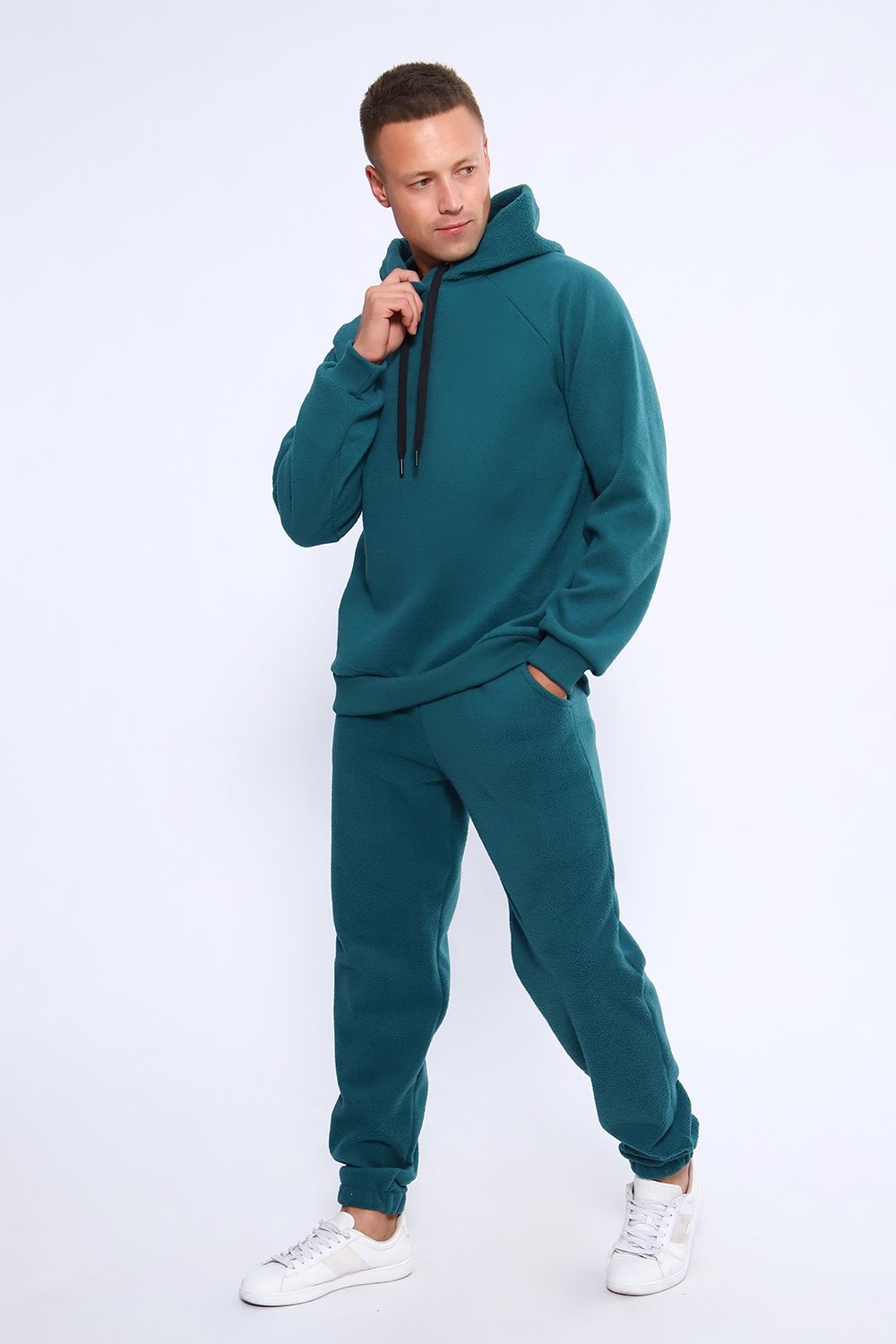 Уютный мужской костюм двойка, среднего объема, из ультра мягкого, нежного с легким сатиновым отливом интерсофта в виде барашка. Изнаночная сторона ткани гладкая, без начеса, что не даст лишнего объема. Представленный комплект, состоит их толстовки и брюк на резинке. Толстовка с рукавом - реглан, самый подходящий вариант на любой окат плеча. Толстовка с капюшоном который имеет кулису со вставленным внутрь шнурком контрастного цвета. В зависимости от партии цвет шнурка может меняться. Капюшон вшит в горловину с небольшим нахлестом по центру горловины. По низу изделия и рукавов пришито кашкорсе в цвет. Брюки прямые среднего объема, с боковыми карманами, низ обработан в подгибку на резинке. Пояс эластичный и отстрочен на специальной поясной машине. Этот костюм отлично подойдет как для дома, так и для прогулок, отдыха на природе и для занятия спортом. Приятные тактильные свойства ткани будут вызывать у вас самые положительные эмоции. На фото модель представлена в 48 размере.