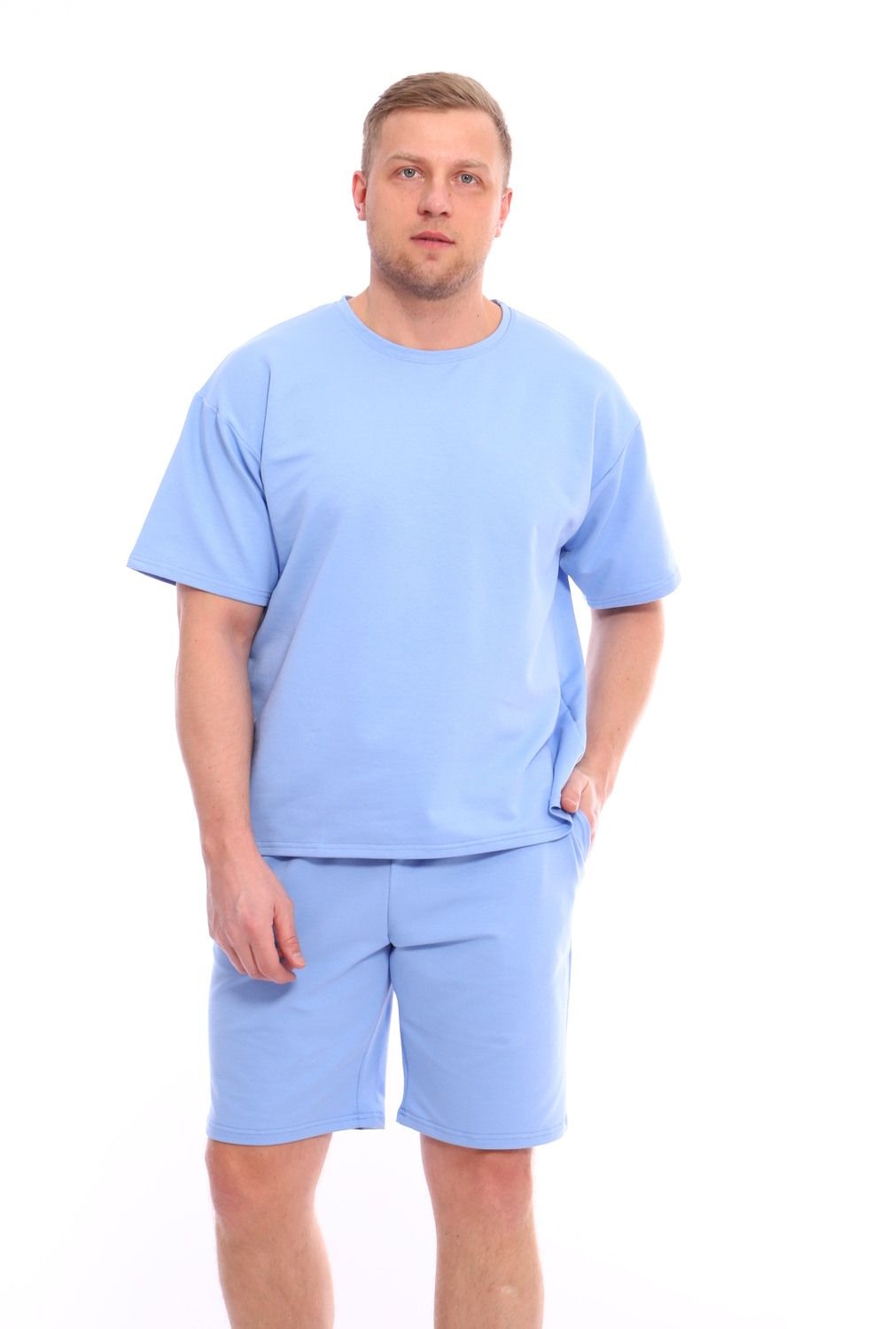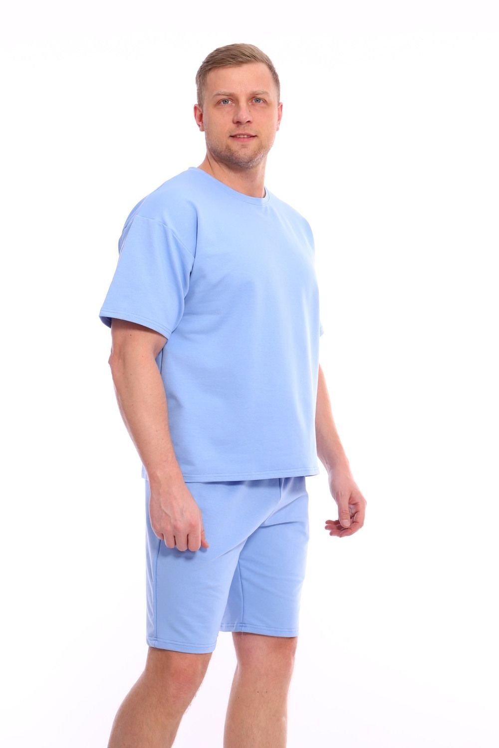 Комплект состоит из футболки оверсайз и шорт. Футболка свободного кроя, с коротким рукавом, круглым вырезом горловины. Шорты прямого кроя с карманами, на поясе шнур для регулировки .