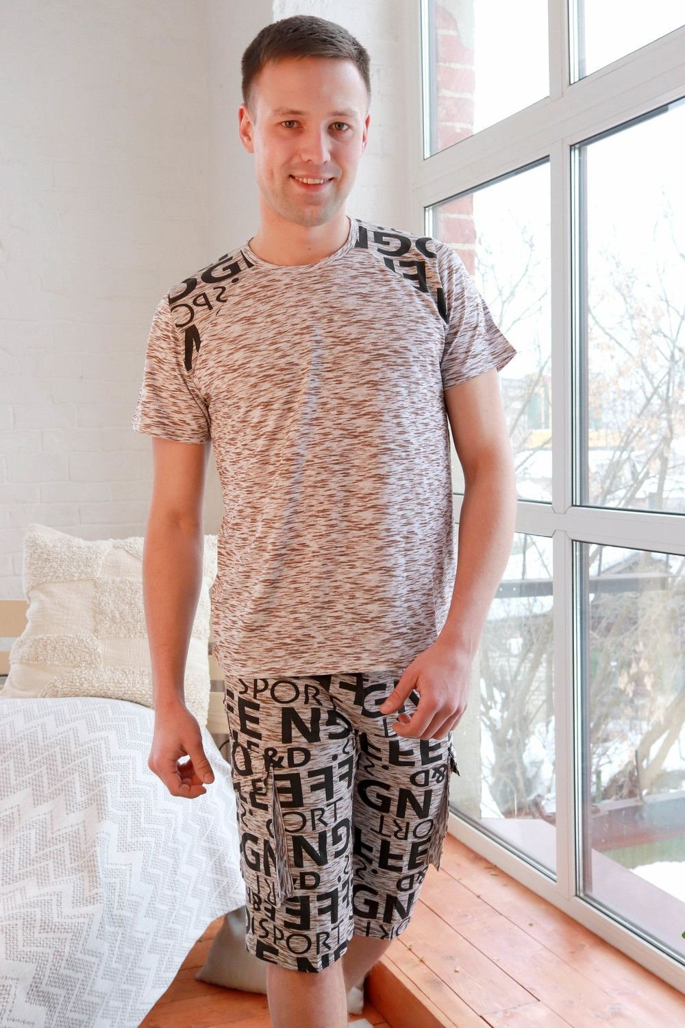Мужской костюм. В комплекте футболка классического кроя с коротким рукавом. Яркие шорты с карманами, длина чуть ниже колена.