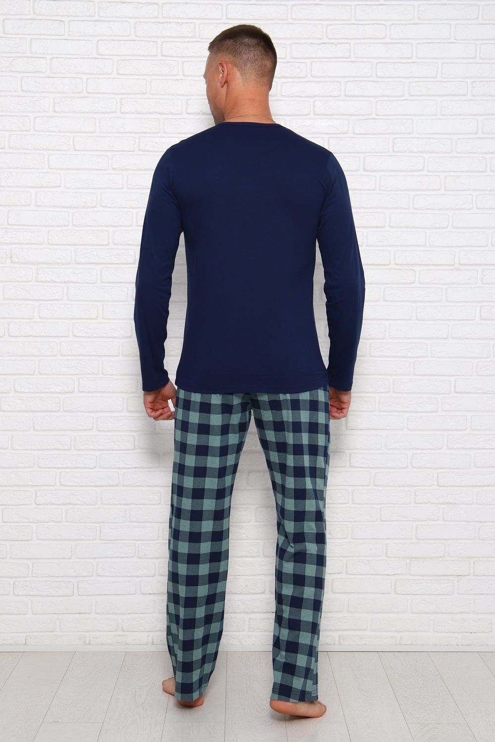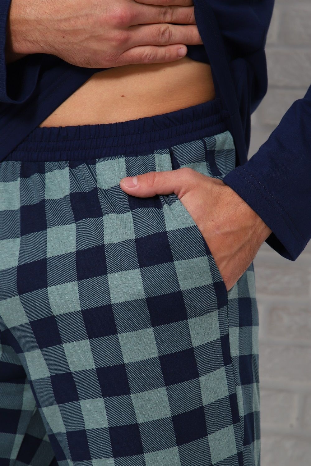 Комфортная мужская пижама из 100% хлопка - брюки в клетку с боковыми карманами, на эластичном поясе и футболка с длинным рукавом и стильным принтом на полочке. Данная модель пижамы составляет комплект Family look с женской пижамой (арт. 1036).