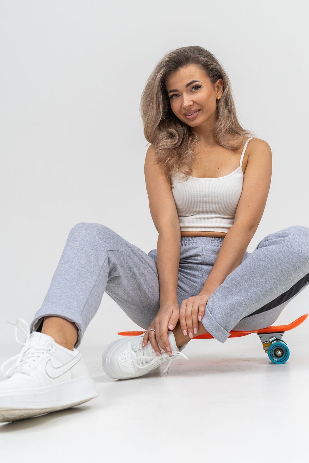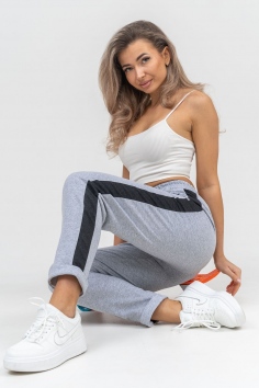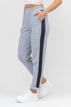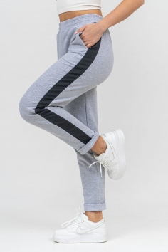 Молодежные брюки с длиной 7/8 и манжетом по низу, выполнены из футера цвета антрацит. По бокам брюк имеются карманы и светлые вставки. Пояс брюк обработан на специальной поясной машине. Брюки подходят как для спорта, так и для отдыха.