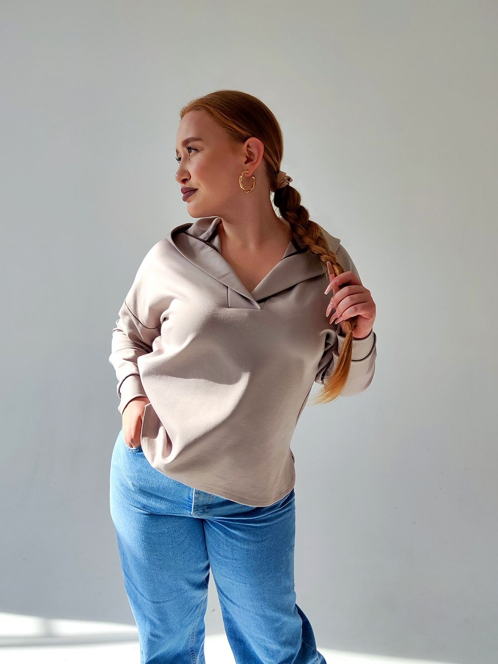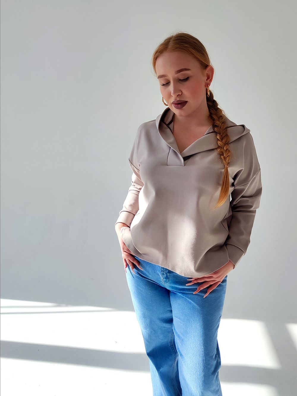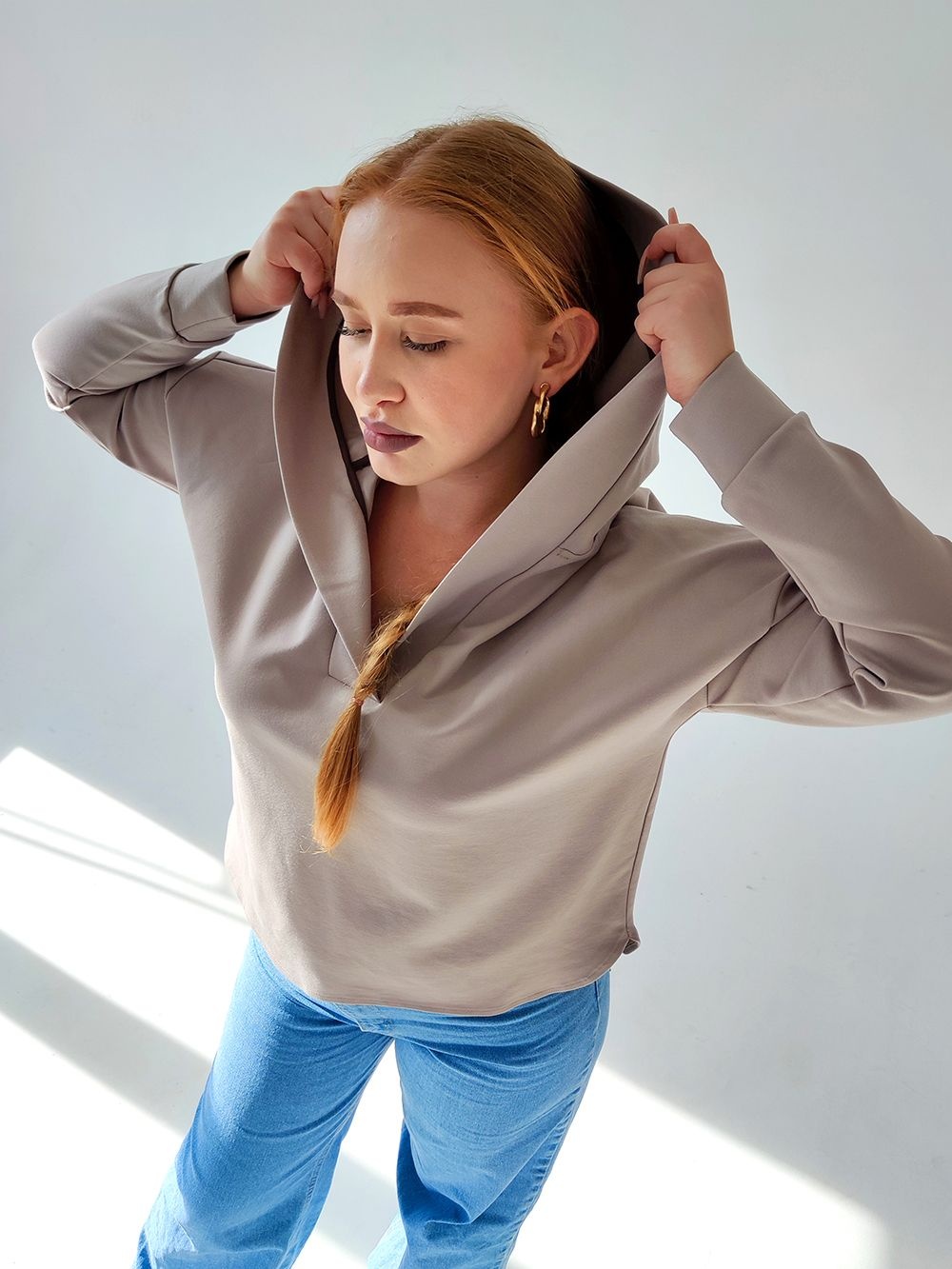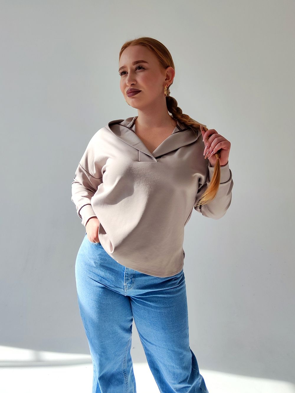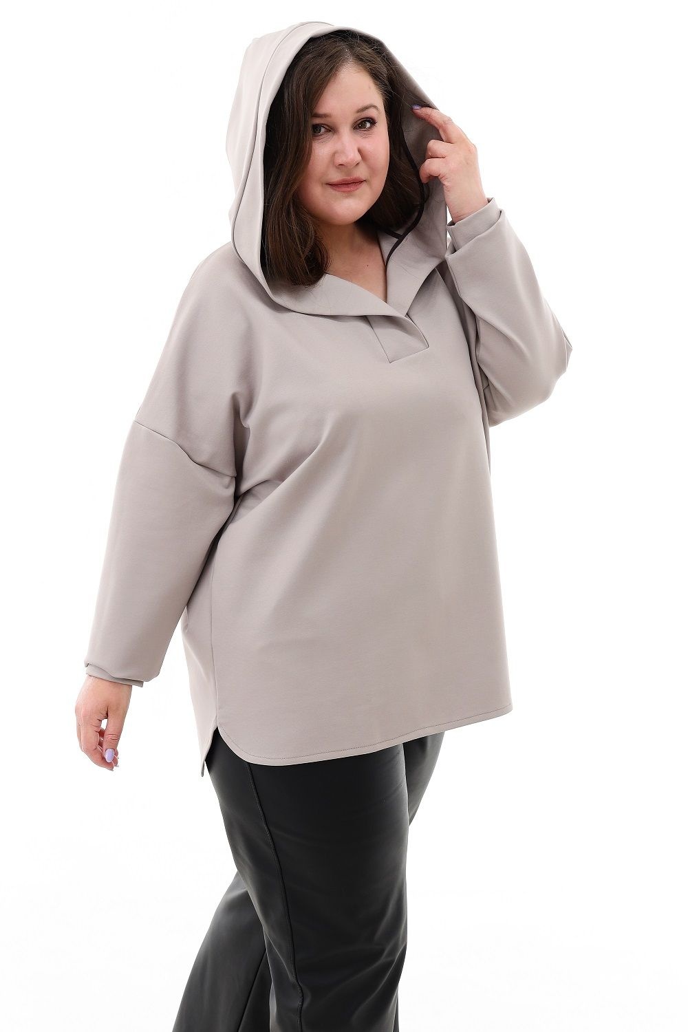Трикотажный женский джемпер-худи с широким капюшоном и V образным вырезом . Выполнен из мягкой трикотажной ткани. Волокна натурального хлопка в составе джемпера удерживают тепло и делают материал более плотным. Волокна вискозы в составе джемпера делают материал более воздушным и позволяют коже дышать. Благодаря добавлению качественного акрила и полиэстера плотная ткань хорошо держит форму, не растягивается и устойчива к истиранию. Модель прямого кроя со свободной посадкой и легким оверсайз эффектом не стесняет движений и визуально не добавляет лишнего объема силуэту. Мягкая вязаная фактура ткани не вызывает раздражения на коже. Лаконичная модель впишется в базовый осенний, зимний и весенний гардероб. Утепленный джемпер отлично дополнит современные и элегантные образы с брюками, юбками и платьями. Модель доступна в больших размерах. Классический джемпер подходит для стирки в машине.
