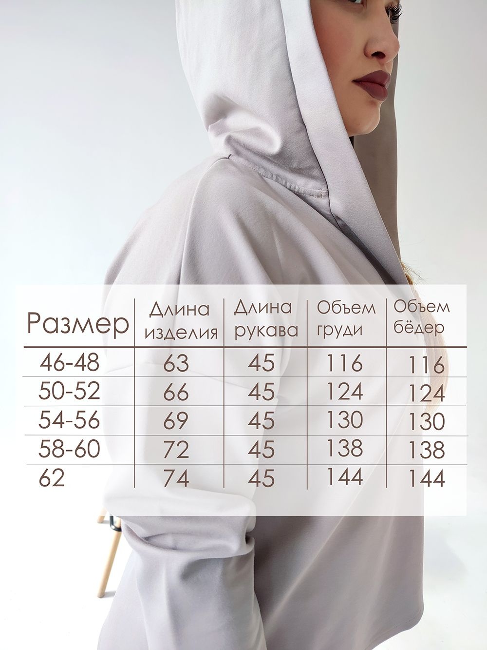 | Размер | Длина изделия | Длина рукава | Объем груди | Объем талии | Объем бедер | Вес (г.) |