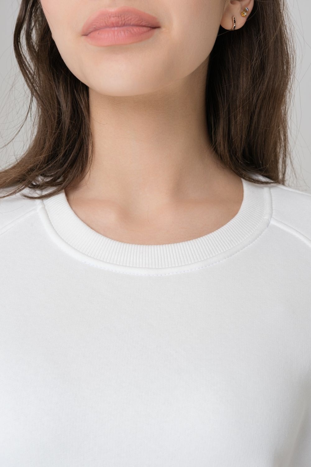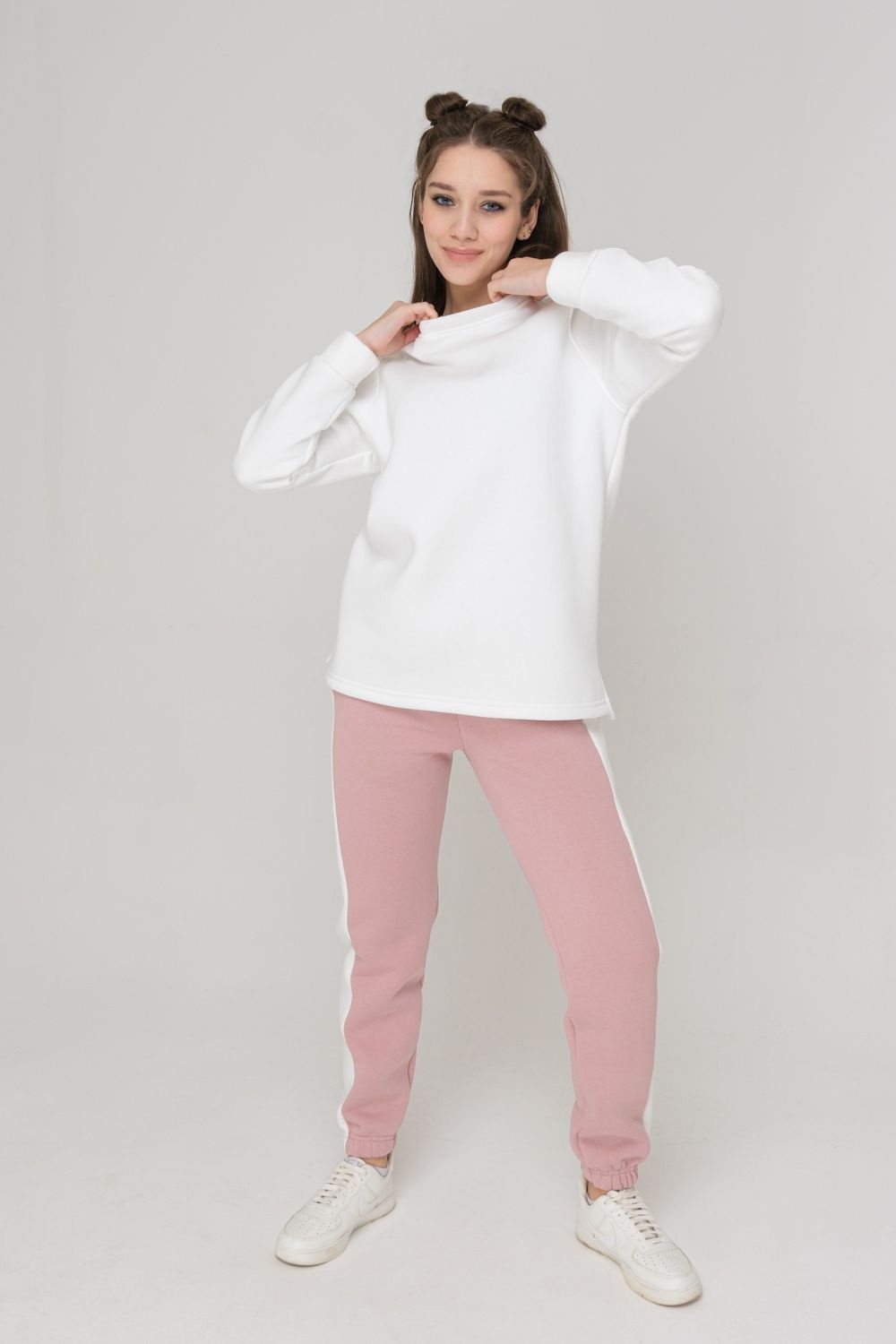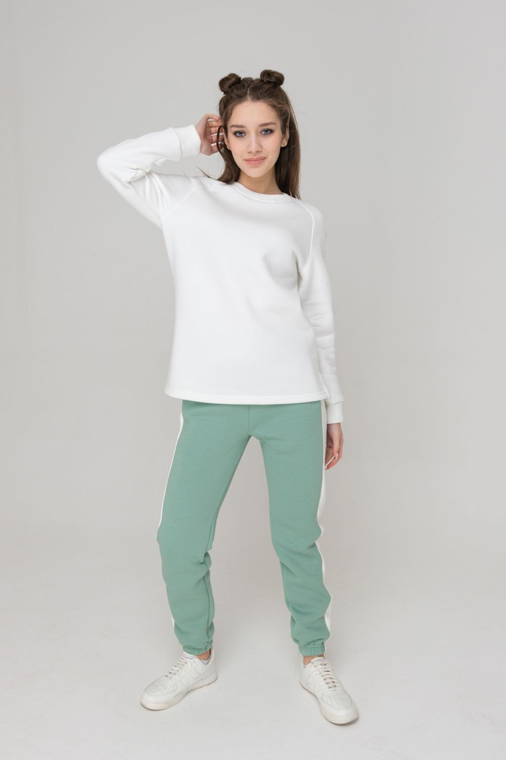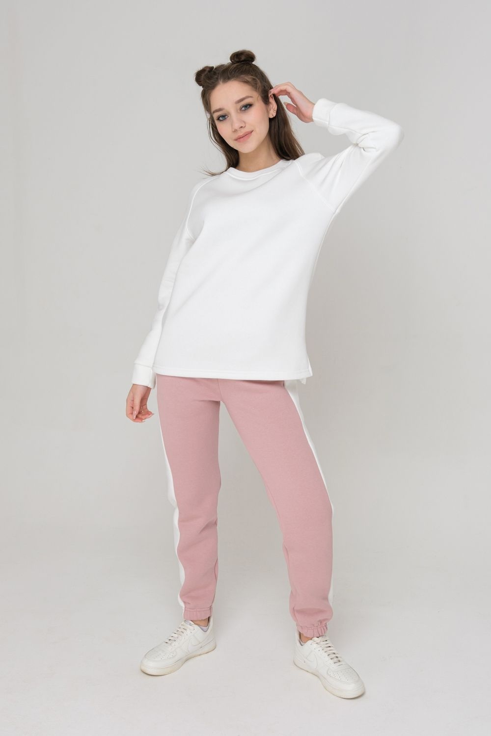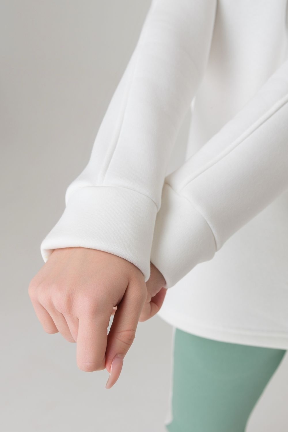 Толстовка утепленная, прямая, с округлой горловиной, с удлиненной спинкой. Рукав реглан, длинный, на манжете. Горловина обработана эластичной обтачкой. В нижней части боковых швов обработаны разрезы.