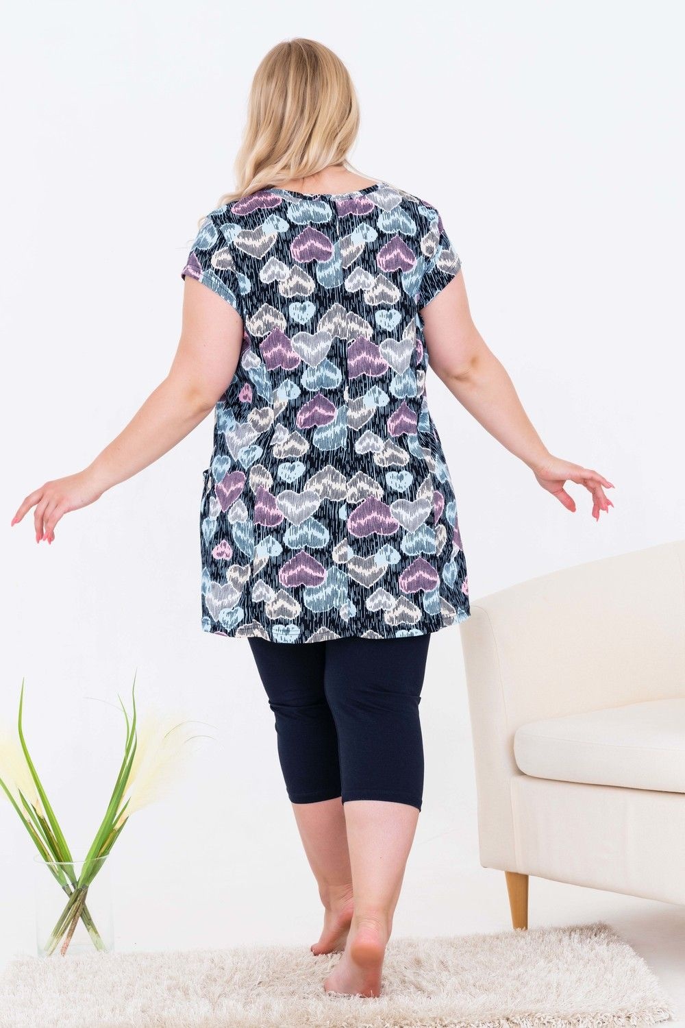 Костюм незаменим для дачи, дома и прогулок. Очень удобные бриджи из высококачественной ткани из России. Наличие 5% лайкры позволяет бриджам не растягиваться на коленях во время носки, многократно увеличивает долговечность изделия. А содержание 95% хлопка делает бриджи очень комфортными и приятными к телу. В измерениях бриджей указаны стандартные размеры фигуры. До этих значений бриджи растягиваются без проблем. Туника ниже линии бёдер, с двумя карманами. Благодаря наличию рельефов на полочке и спинке туника имеет хорошую посадку на фигуре. Лёгкая приталенность стройнит.