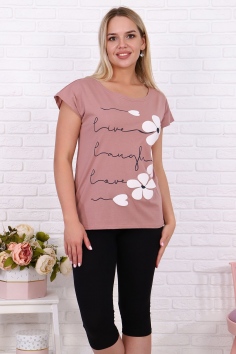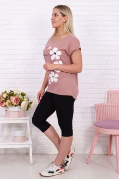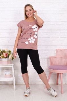 Костюм женский с принтом состоит из футболки и бридж. Модель представлена в трех трендовых оттенках этого сезона. Футболка выполнена из трикотажного полотна высокого качества, полуприлегающего силуэта, горловина в виде лодочки. Бриджи удобные, практичные, облегающего силуэта. Резинка вшита в пояс, длина чуть ниже колена. Ткань бридж мягкая на ощупь, не садится после стирки и не теряет цвет. Костюм непременно станет идеальным предметом вашего гардероба для фитнеса, туризма и любого активного отдыха.