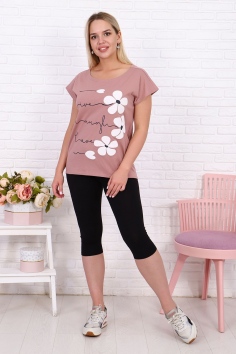 Костюм женский с принтом состоит из футболки и бридж. Модель представлена в трех трендовых оттенках этого сезона. Футболка выполнена из трикотажного полотна высокого качества, полуприлегающего силуэта, горловина в виде лодочки. Бриджи удобные, практичные, облегающего силуэта. Резинка вшита в пояс, длина чуть ниже колена. Ткань бридж мягкая на ощупь, не садится после стирки и не теряет цвет. Костюм непременно станет идеальным предметом вашего гардероба для фитнеса, туризма и любого активного отдыха.