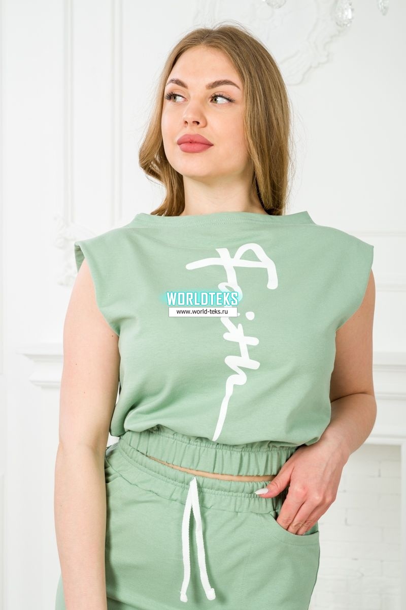 Костюм женский из юбки и майки из футера Faith ментол №А-20327