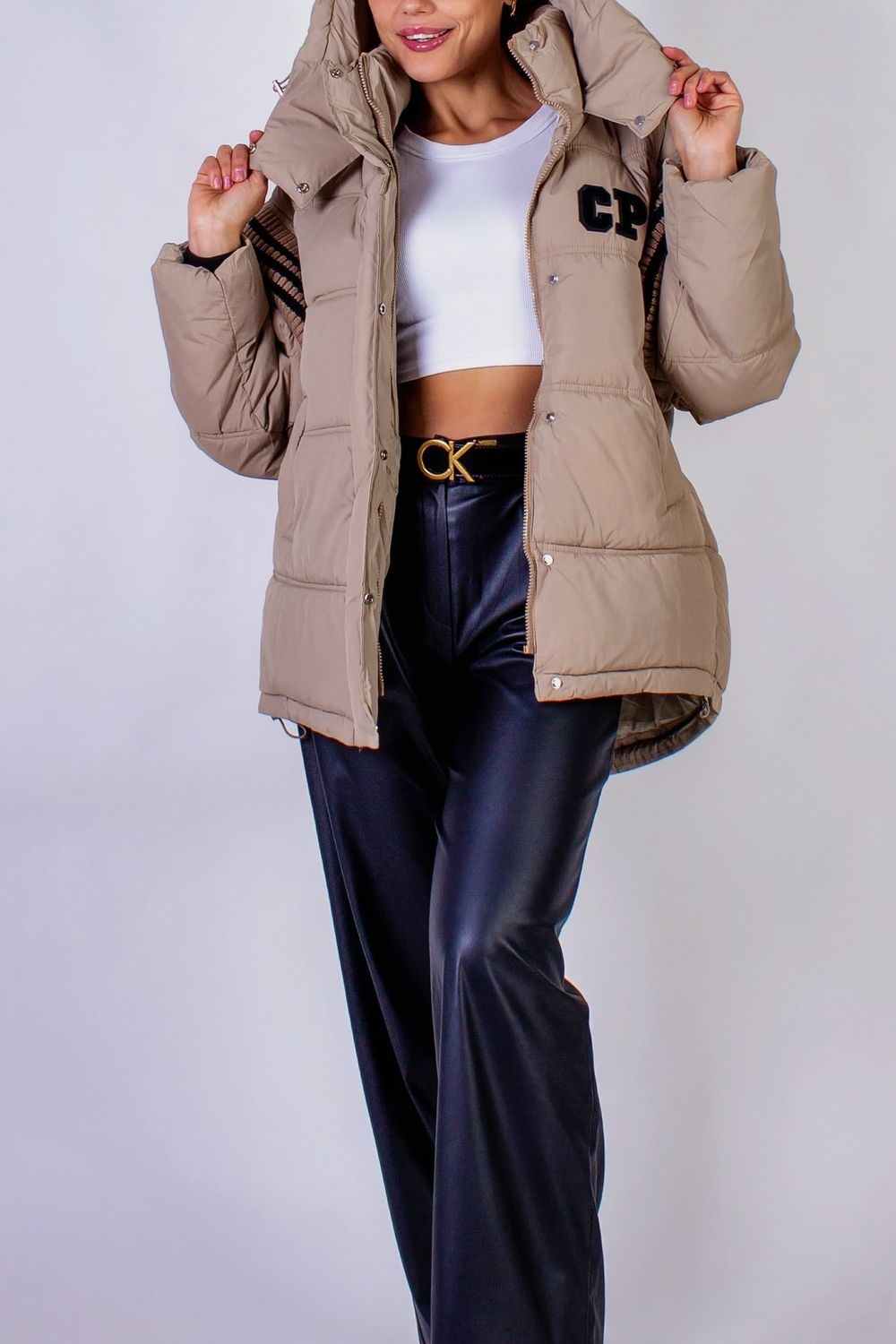 Стильная куртка с капюшоном Оверсайз Евро-зима, демисезон арт.2309 - коричневый