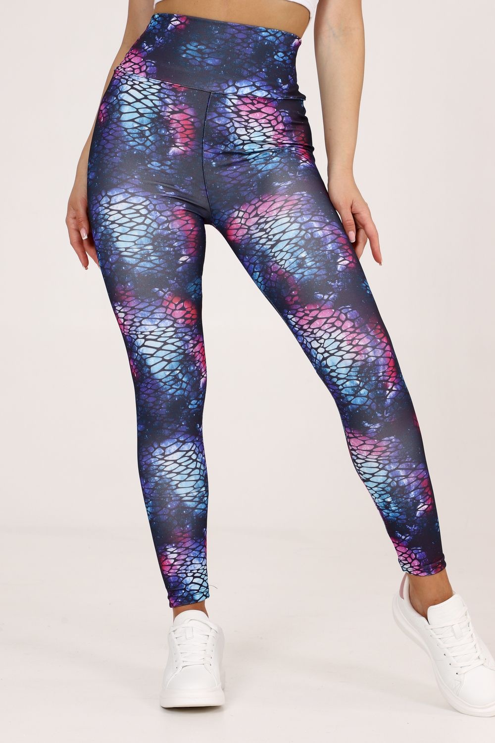 Цветные легинсы, выполненные в оригинальных расцветках, подарят эстетическое удовольствие. Они подходят для занятий различными видами спорта: для фитнеса, танцев, йоги, физкультуры, художественной гимнастики, бега на улице, пилона, тренировок, баскетбола, волейбола, большого тенниса, кроссфита, хореографии, балета, спортзала, бокса, пилатеса, стрип пластики, тверка, пол дэнс. Это очень удобная вещь не только в плане комфорта. Комбинируя их с разными элементами одежды, можно удачно создать образ в том или ином стиле. Легинсы выполнены из плотного эластичного материала, с широким поясом, которые плотно облегают фигуру, не просвечивают, не растягиваются после носки.