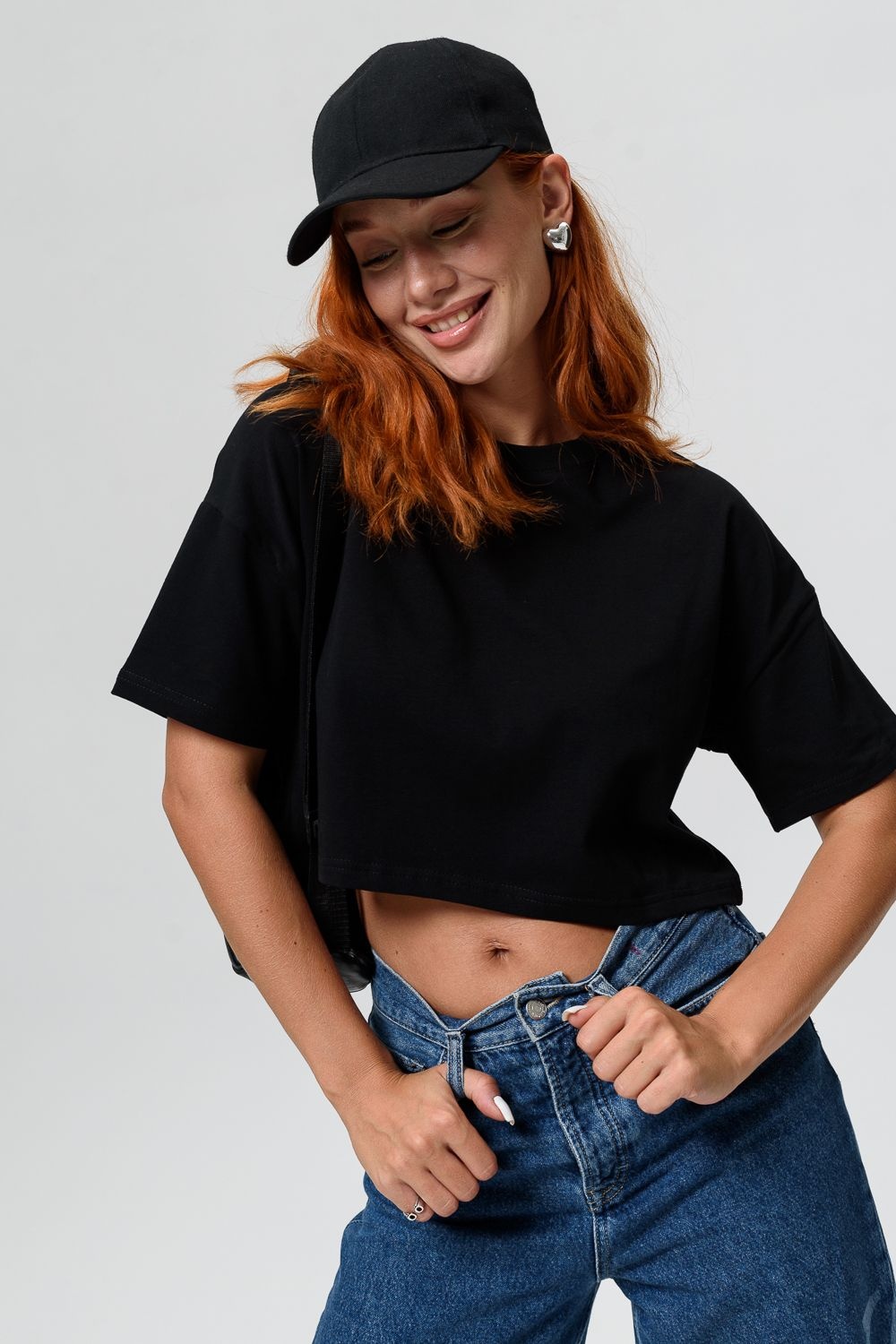 Кроп топ женский оверсайз 14416-1 - черный №Н-144161