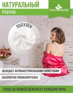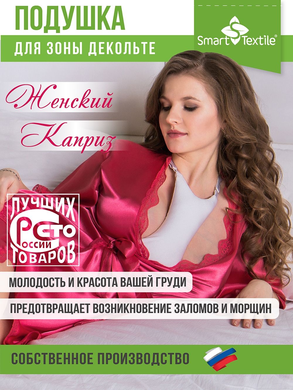Инновационная разработка дизайнеров и ученых – подушечка для зоны декольте «Женский каприз», - была по достоинству оценена представительницами прекрасного пола за возможность позаботиться о красоте и здоровье груди и области декольте простым и комфортным способом. За свою уникальность, эффективность и доступность подушечки для декольте «Женский каприз» стали победителями конкурса '100 лучших товаров России' . Подушечки для декольте серии «Полулён» изготовлены из натурального льняного материала, отличающегося прочностью, воздухопроницаемостью, способностью впитывать влагу и быстро ее отводить. Полульняная ткань (лён+хлопок) – гигиеничная, гипоаллергенная, приятная к коже. Подушечка фиксируется с помощью удобных бретелек, не вызывает никакого дискомфорта при использовании, во время сна на боку или на животе. Полезная привычка спать с удобным аксессуаром, поддерживающим грудь, обеспечит не только отсутствие морщин в области декольте, но и профилактическое воздействие против заболеваний женской груди, связанных с изменениями в молочных железах. Использовать подушечку для декольте полезно и удобно во время беременности и лактации, когда грудь особенно нуждается в заботе и поддержке. Рекомендовано использование и в период реабилитации после операционных вмешательств или косметологических процедур.