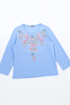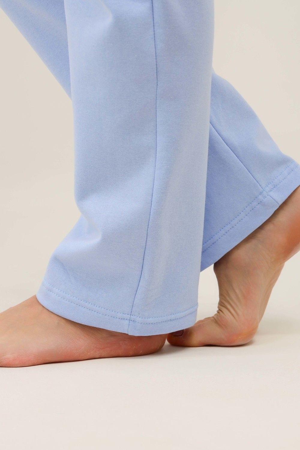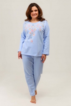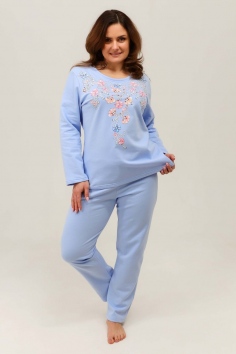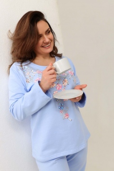 Женская пижама из футера 2-х нитки с начёсом. Дизайн позволяет использовать данную модель как пижаму для сна, так и в качестве костюма для дома. Брюки и лонгслив свободного кроя. Нежный изящный принт в виде россыпи жемчуга и цветов. В измерениях обхвата талии указан размер резинки, которая растягивается без проблем до стандартных измерений фигуры. Очень удобная высокая посадка брюк. Длинные рукава для уюта и тепла.