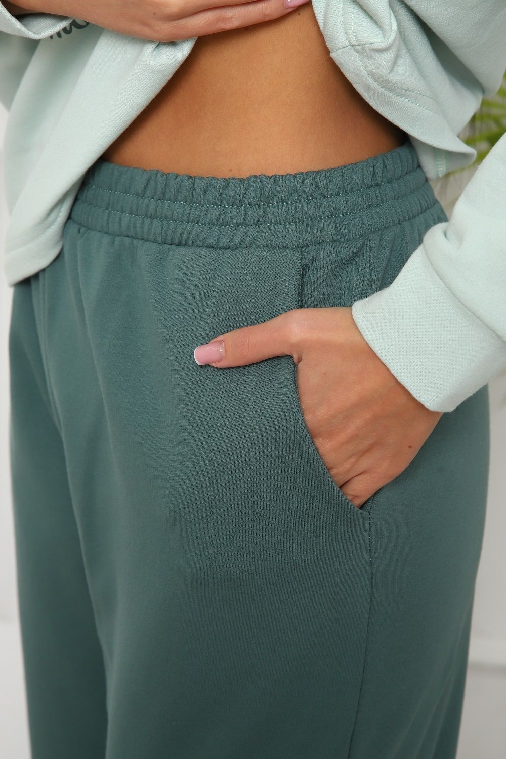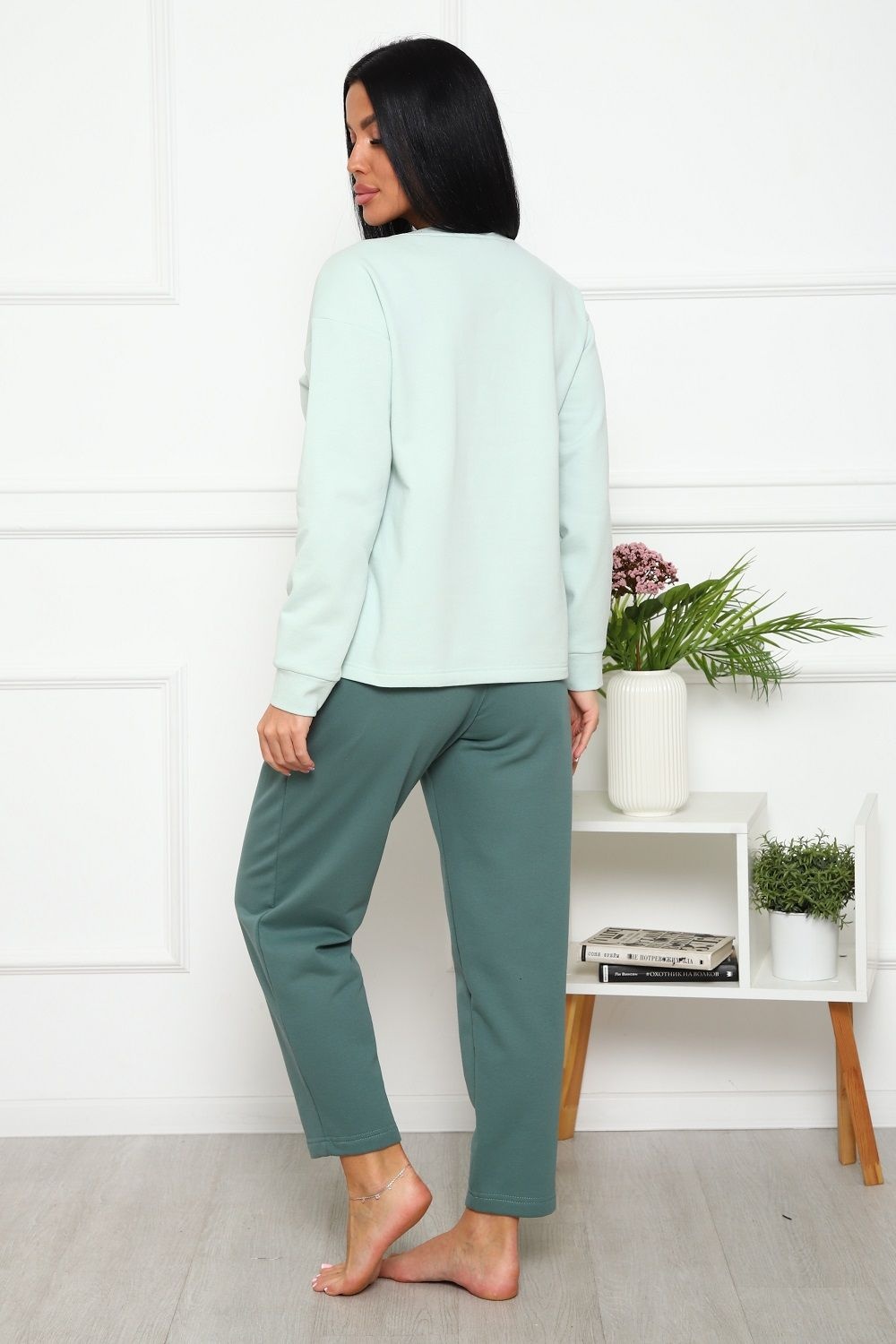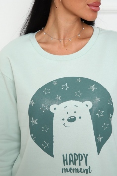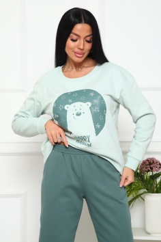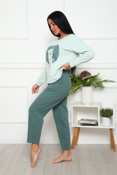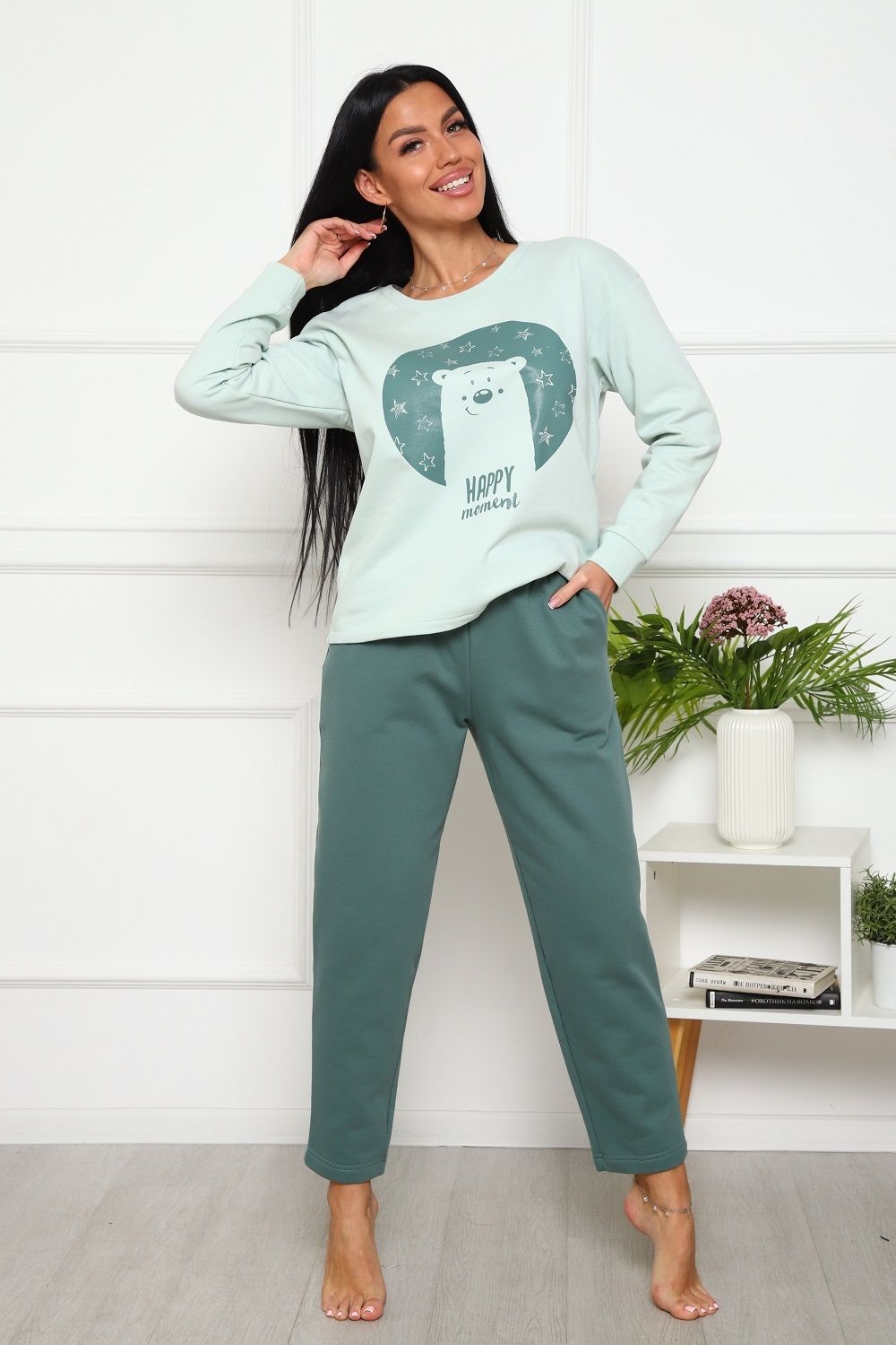 Пижама женская теплая: футболка прямого кроя со спущенным плечом и милым принтом на груди, бриджи 'бананы' с карманами в боках. Комфортный хлопковый трикотаж - футер 2-нитка с начесом на изнаночной стороне.