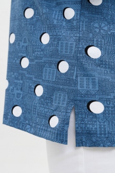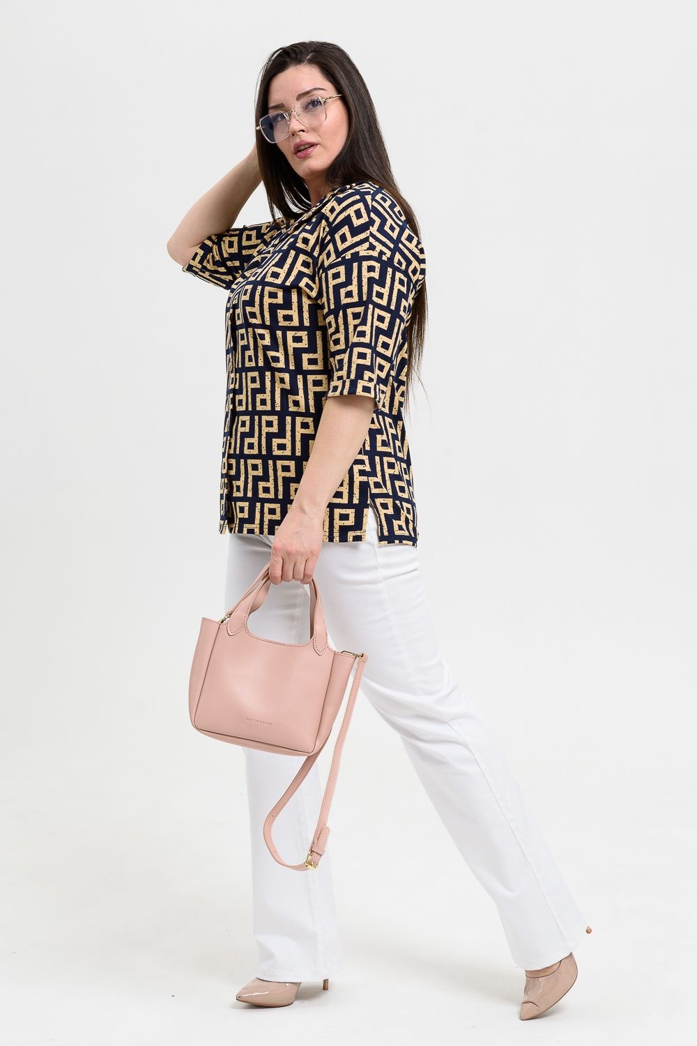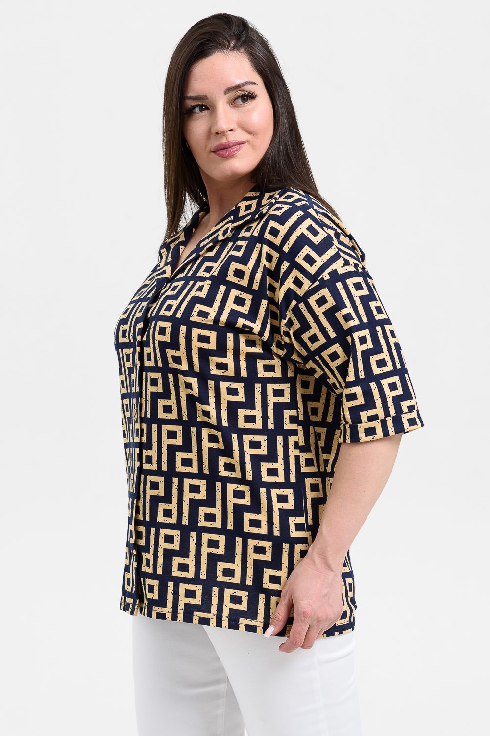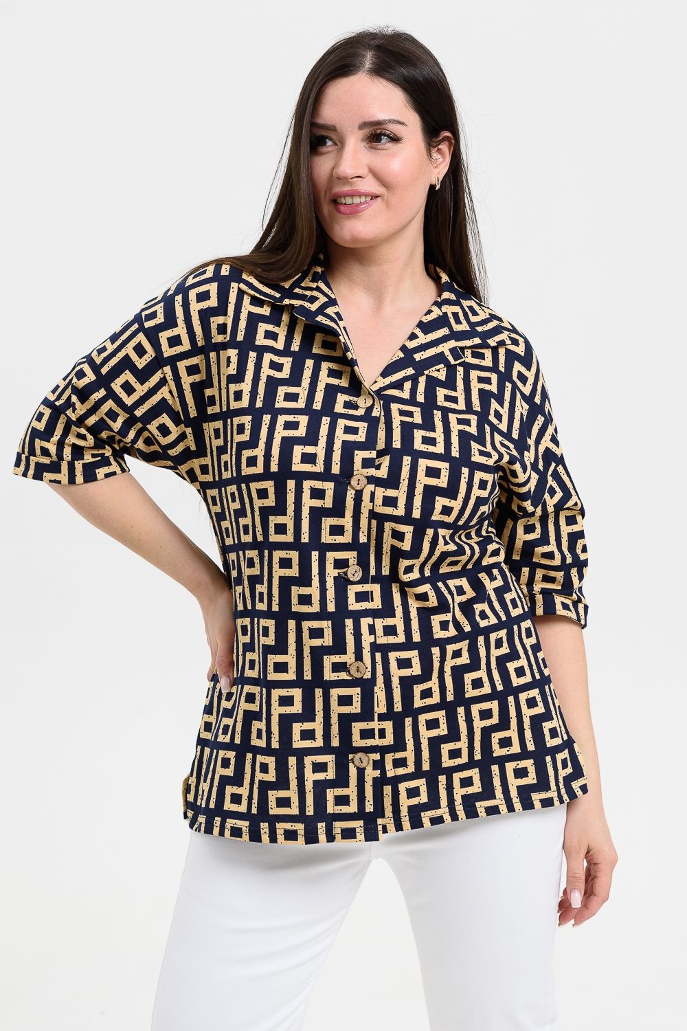 Рубашка-блузка из лёгкого мягкого трикотажного полотна прямого силуэта, на пуговицах, отложной воротник втачной рукав с манжетами, застёжка на пуговицах. Изделие хорошо сочетается с брюками, юбками, бриджами.
