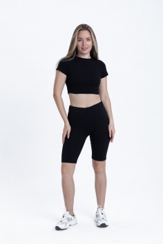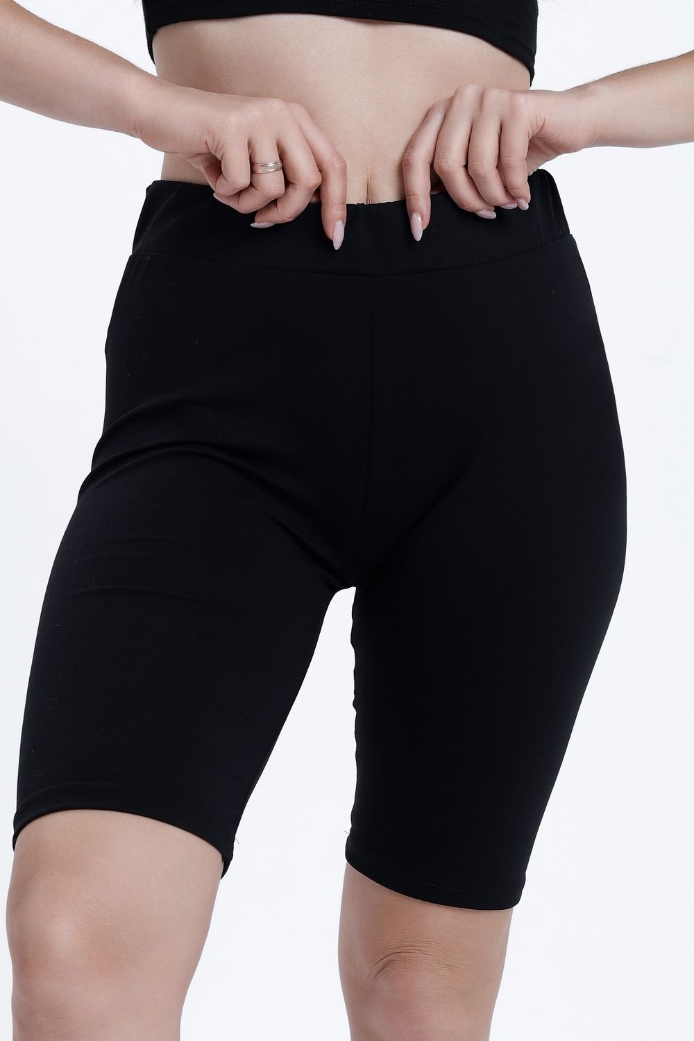 Велосипедки облегающего силуэта, с высокой линией талии. Пояс широкий отрезной с эластичной тесьмой внутри. Нижний срез обработан швом вподгибку.