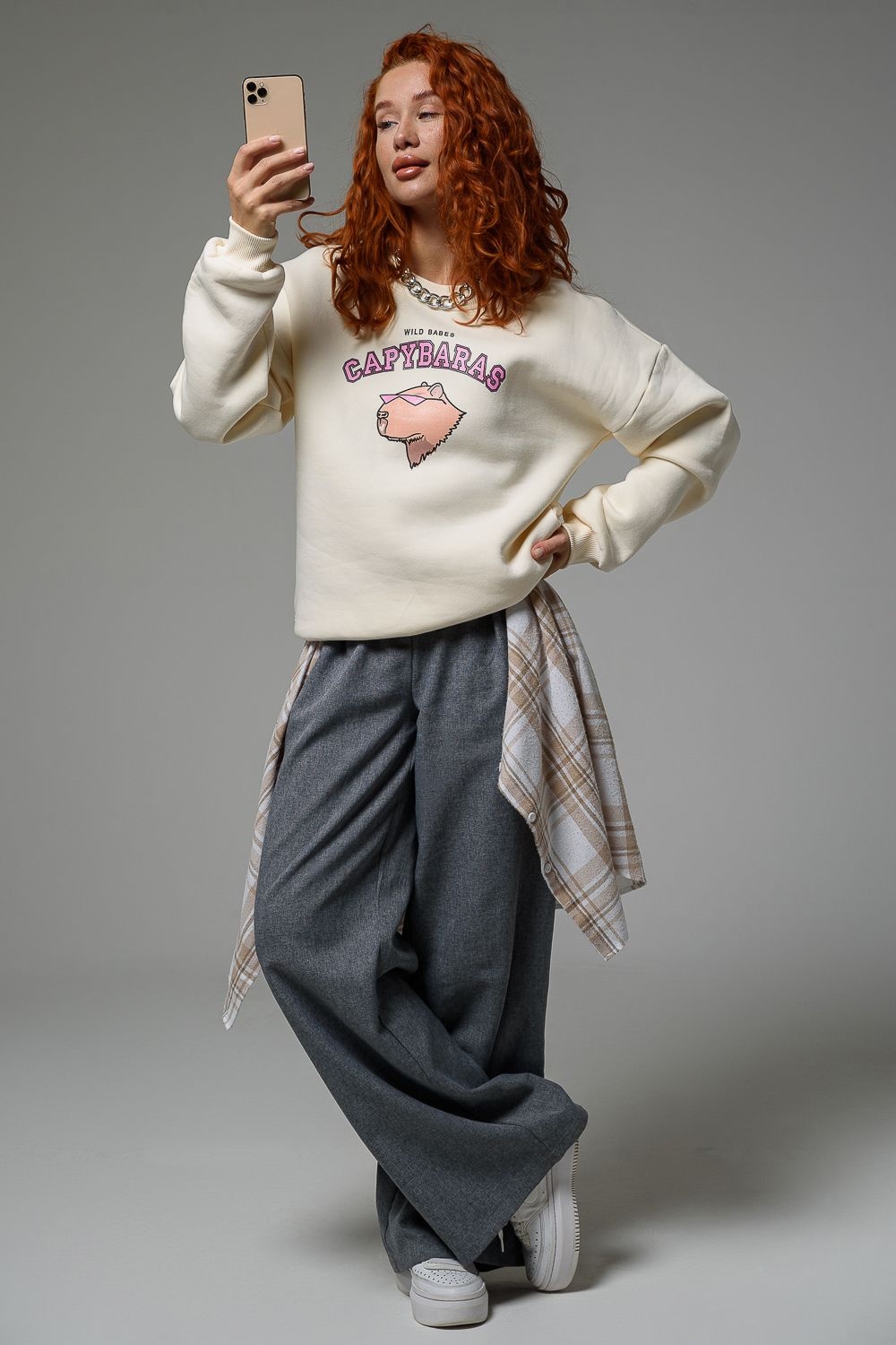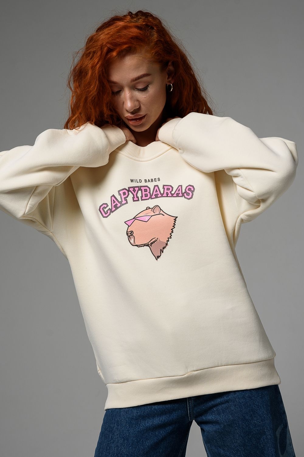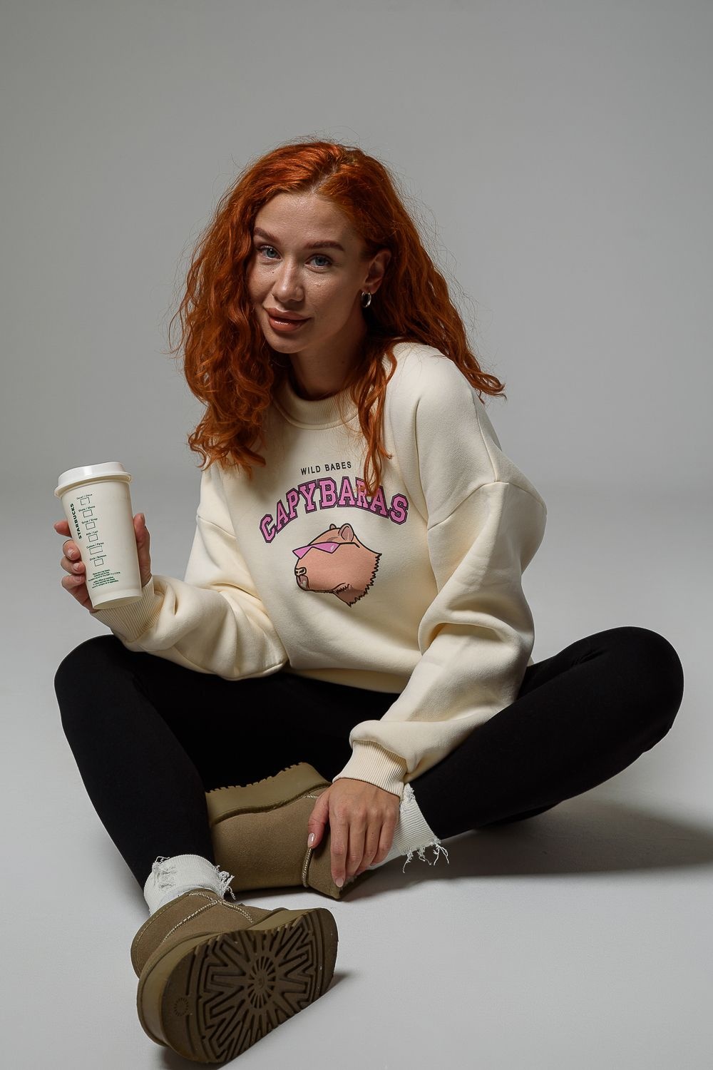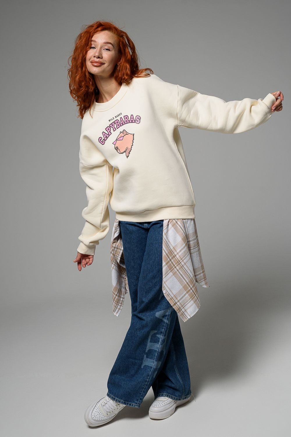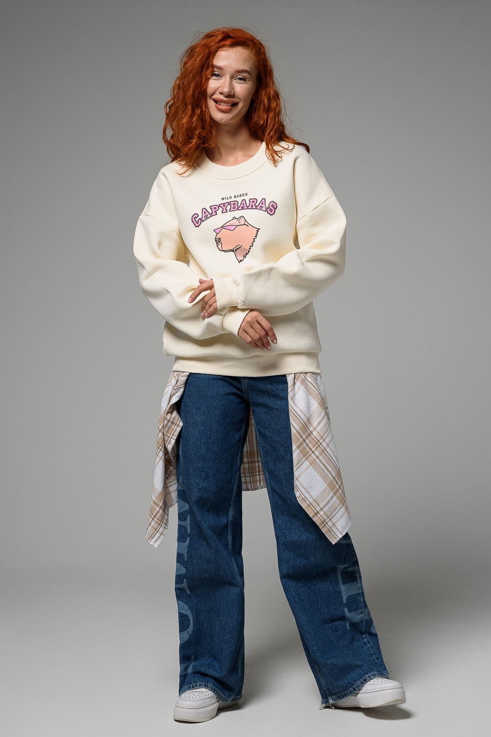 Женский свитшот оверсайз - молочный+Капибара №Н-8526