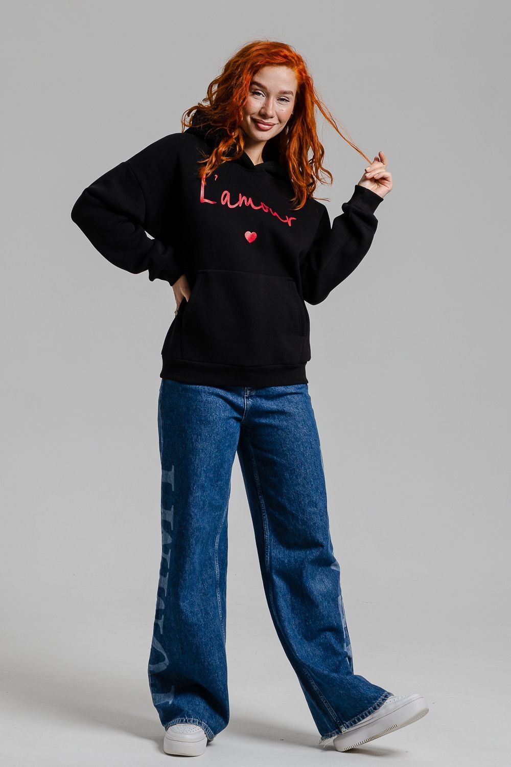 Толстовка женская оверсайз - черный+Лямур №Н-8518
