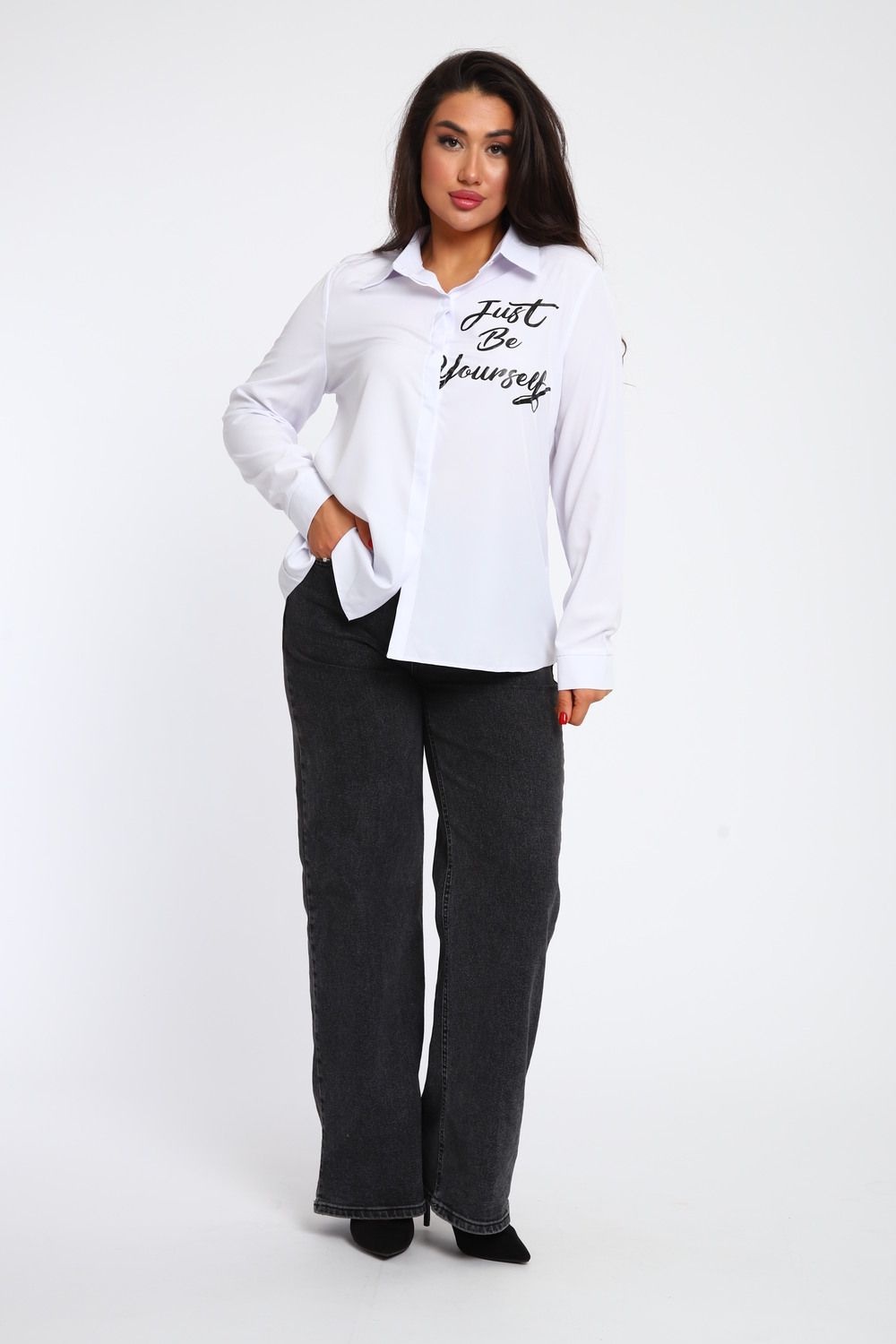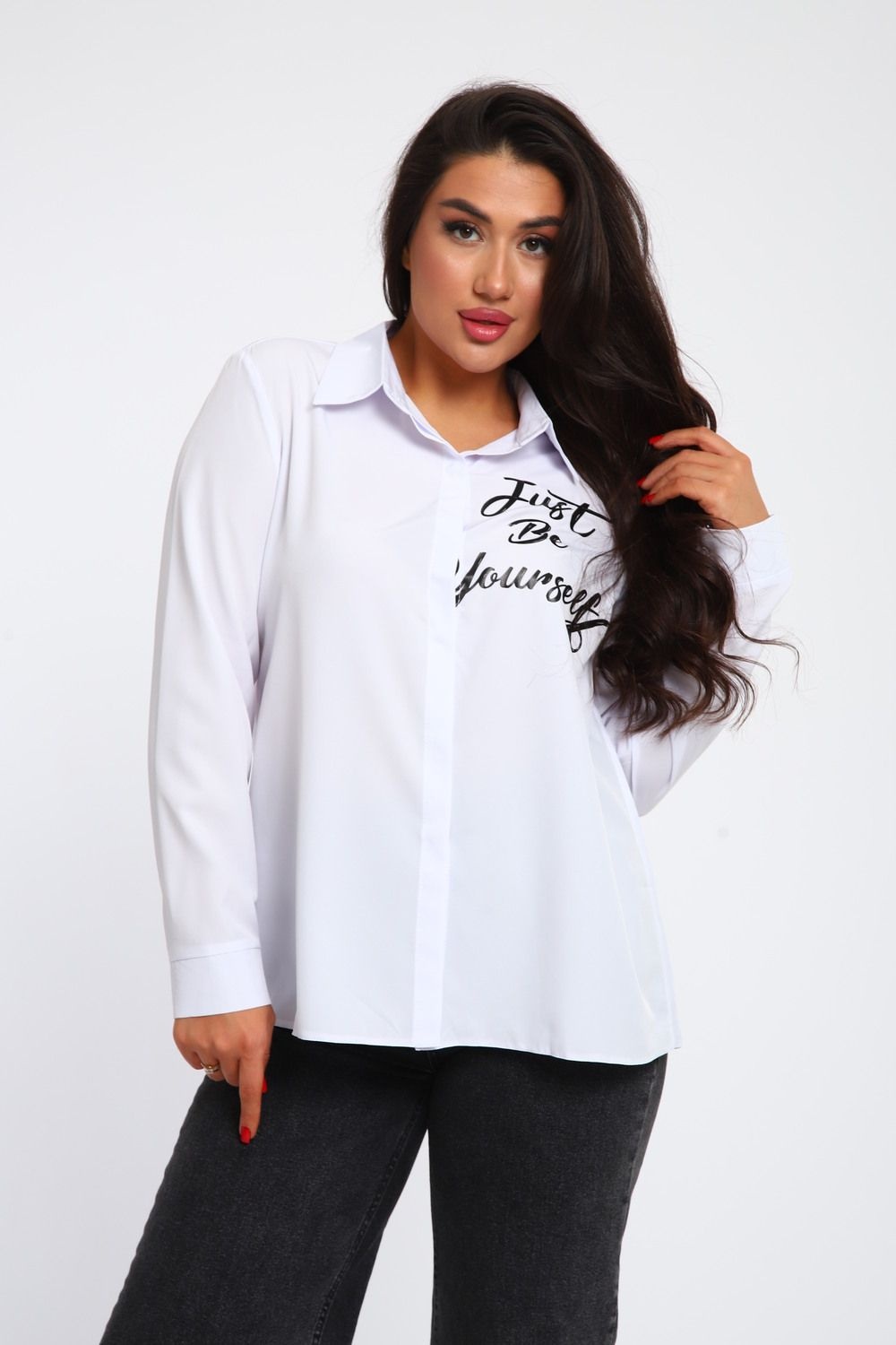 Размерный ряд от 50 до 56 обеспечивает комфортное и идеальное прилегание, соответствующее индивидуальным параметрам фигуры. Белая классическая рубашка - это незаменимый элемент женского гардероба, который никогда не выходит из моды и подходит для различных ситуаций, будь то деловая встреча, официальное мероприятие или повседневный городской стиль. Белая рубашка с длинным рукавом и воротником на стойке идеально подходит для создания строгого делового образа. Использование лучших натуральных тканей обеспечивает комфорт и долговечность, что делает эту рубашку практичным выбором для частого использования. Уникальный рисунок на полочке привлекает внимание и добавляет оригинальности вашему образу. Простота и элегантность делают эту рубашку подходящей как для ежедневных, так и для торжественных мероприятий.