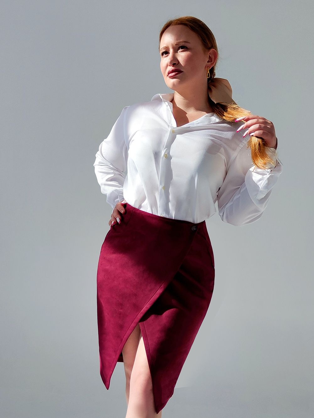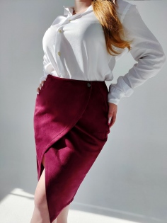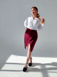 Юбка на запах замшевая - бордо №Н-3202
