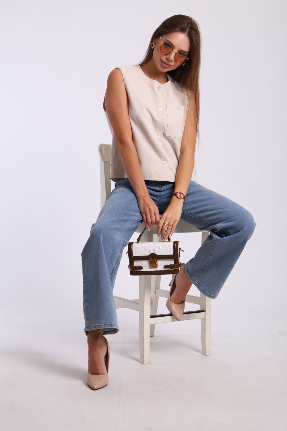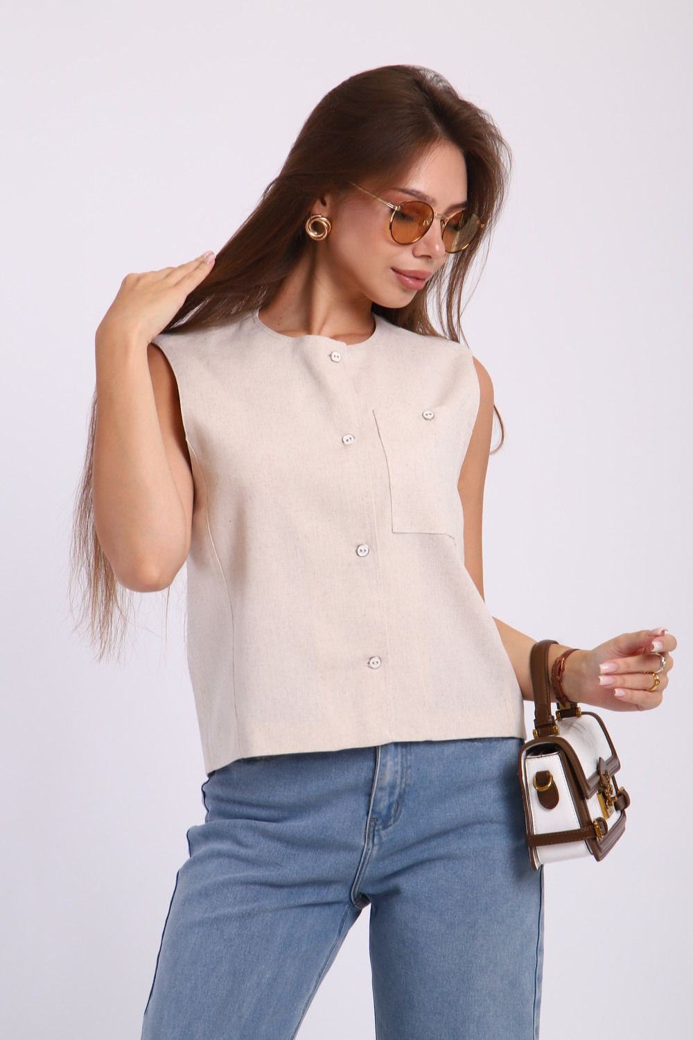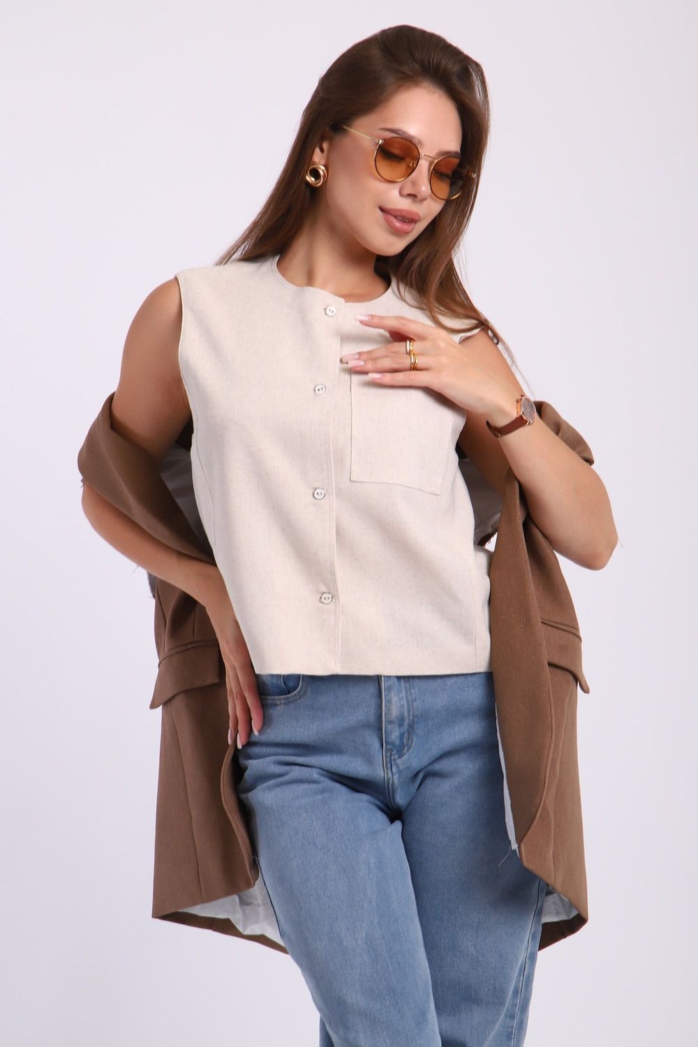 Женская жилетка в классическом дизайне – это стильный элемент образа, который не оставит вас незамеченной! Базовую модель без рукавов отличает свободный, строгий низ и застежка на пуговицы. Популярный предмет гардероба сшит из мягкой и дышащей, но плотной, износостойкой и долговечной ткани, представлен в светлом цвете. Элегантная льняная безрукавка дополнит гардероб взрослых женщин или молодых девушек любого роста: высокого или невысокого, будет удобна в виде повседневной, подойдет для официальных или праздничных мероприятий.