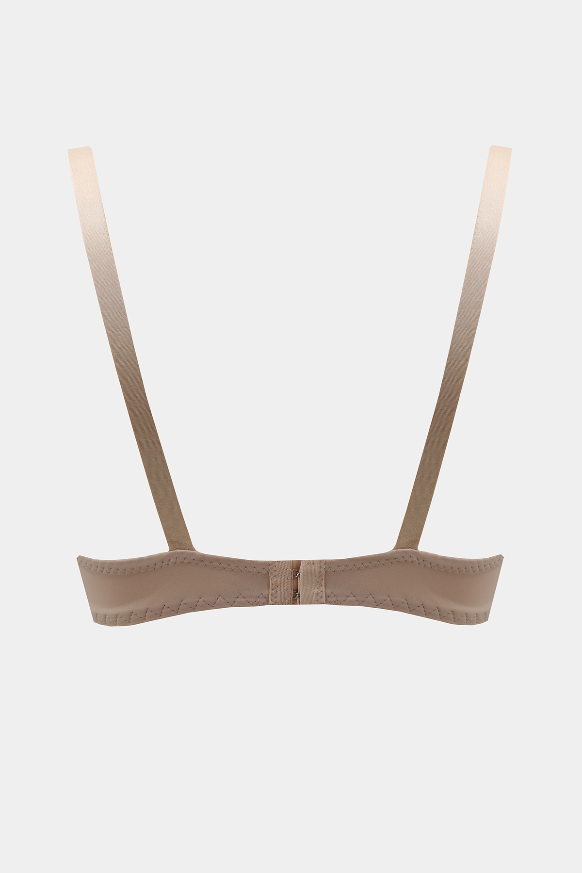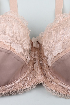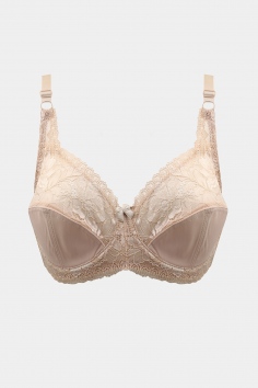 Женский бюстгальтер с мягкими чашечками и косточками. Украшен вставками из кружева. Сзади застежка на крючки и петли. Несъемные бретели регулируются по длине.