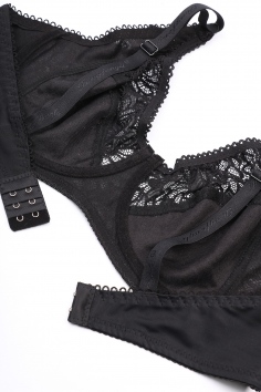 Кружевной бюстгальтер без поролона, с косточками. Несъемные бретели регулируются по длине. Застежка на крючки и петли сзади. Особенно удобен в носке в жаркое время года.