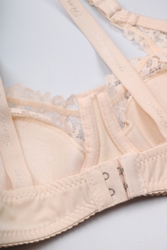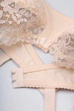 Бюстгальтер женский без поролона, с косточками. Несъёмные бретели регулируются по длине. Застёжка на крючки и петли сзади. Украшен тонким кружевом. Особенно удобен в носке в жаркое время года.