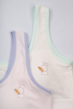 Бюстгальтер-топ подростковый на бретелях средней ширины. Изделие без металлических застёжек и без косточек. Спереди мягкие съёмные чашечки. Эластичная резинка под грудью. Топ не стесняет движения. Ткань приятная к телу.